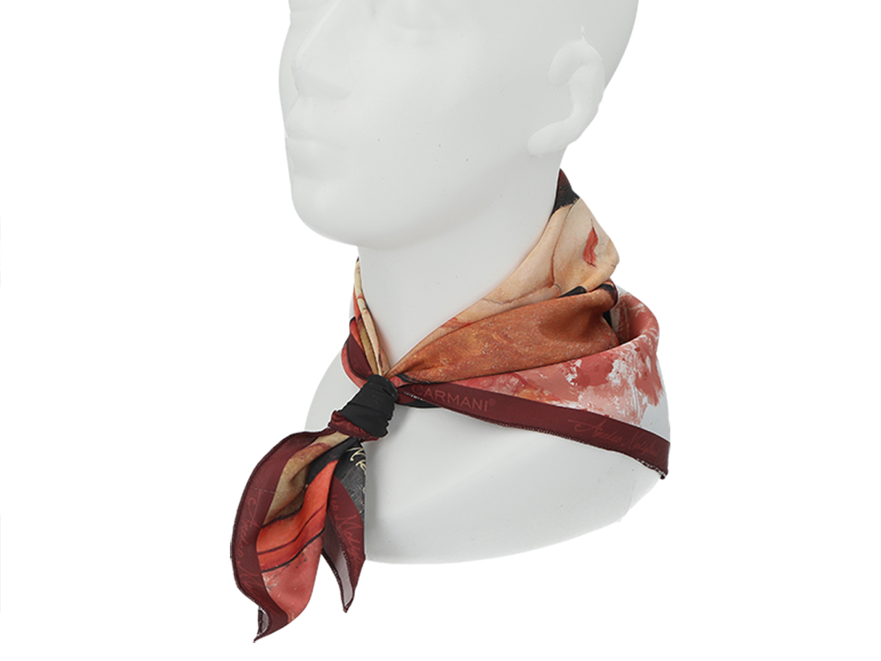 Apaszki CARMANI wykonane są z innowacyjnej tkaniny tamina szlachetna. która pozwala na wykonanie misternych wzorów przy zachowaniu jedwabistego dotyku.