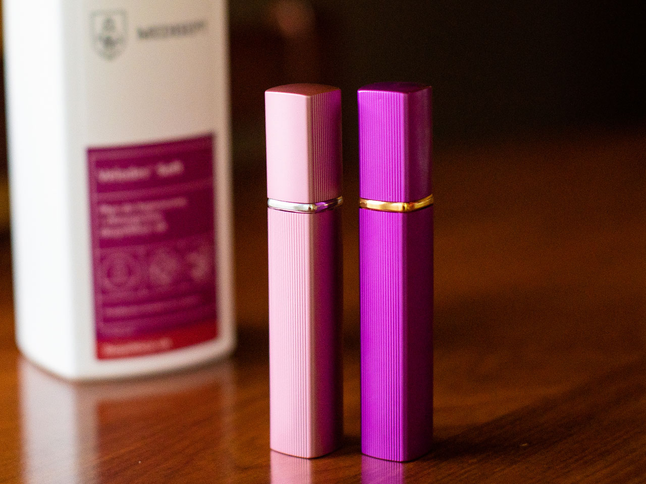 Elegancki i dyskretny ale przede wszystkim praktyczny pojemnik na płyn dezynfekujący to obecnie nieodzowny atrybut damskiej torebki. O ile przyjemniej jest korzystać z atomizera o unikalnym. kobiecym kształcie na dodatek w ulubionym kolorze. Dezynfek
