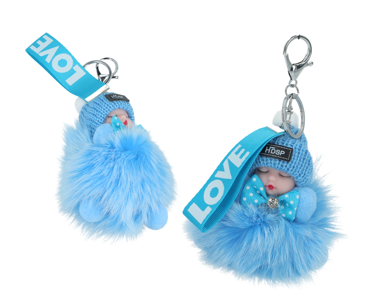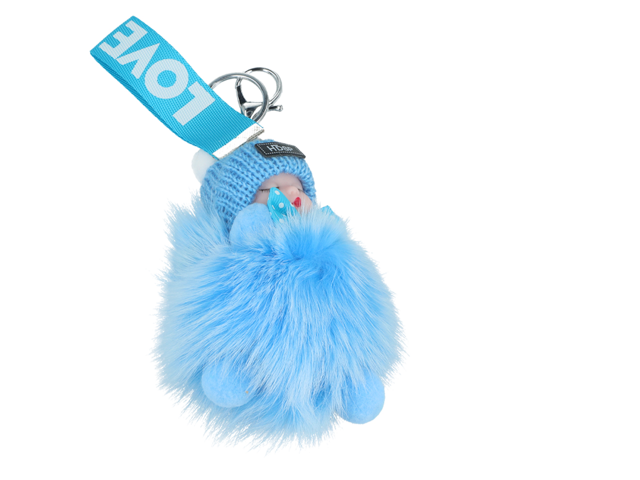 Breloczek do kluczy – Niemowlak, niebieski pompon