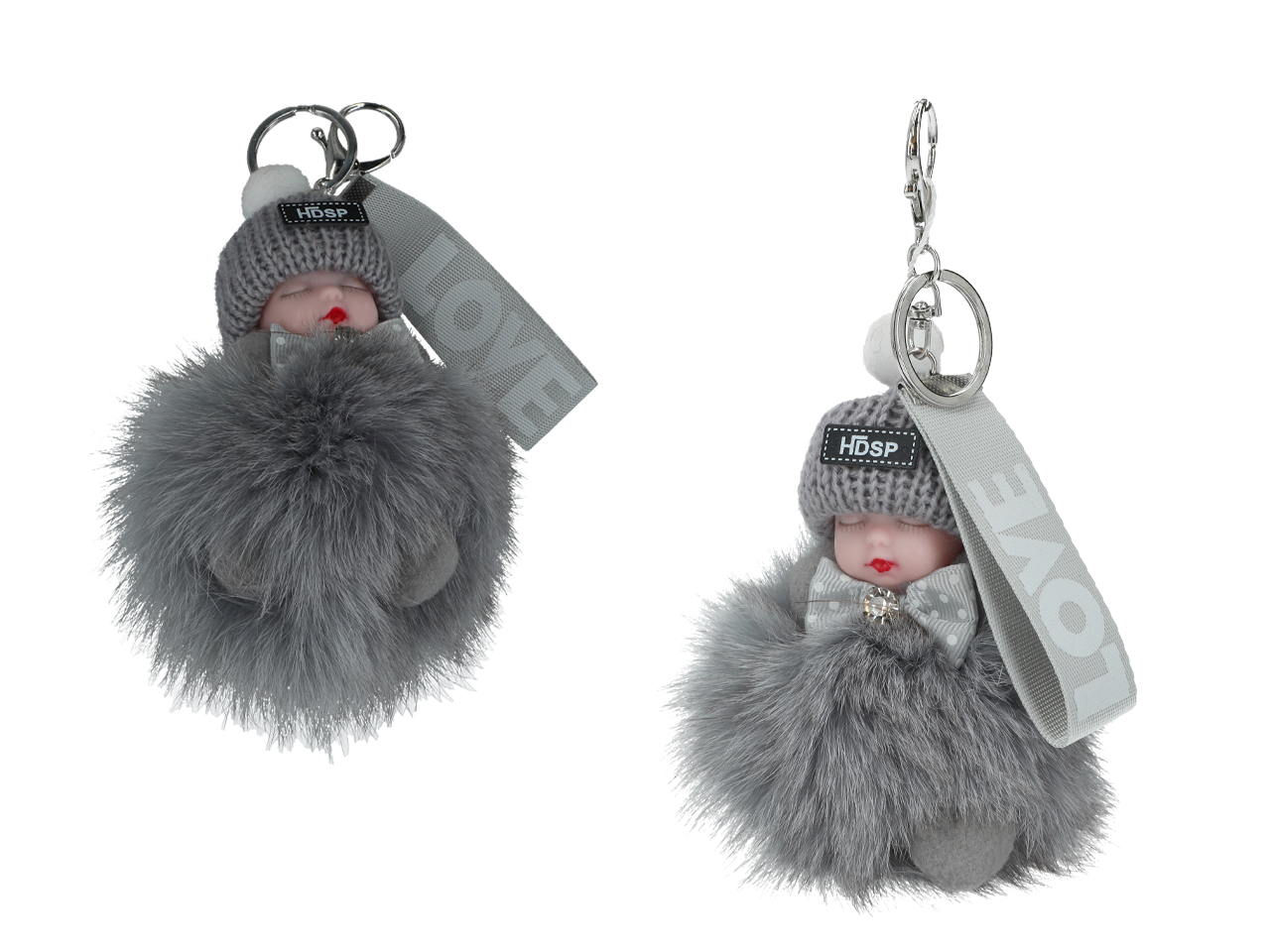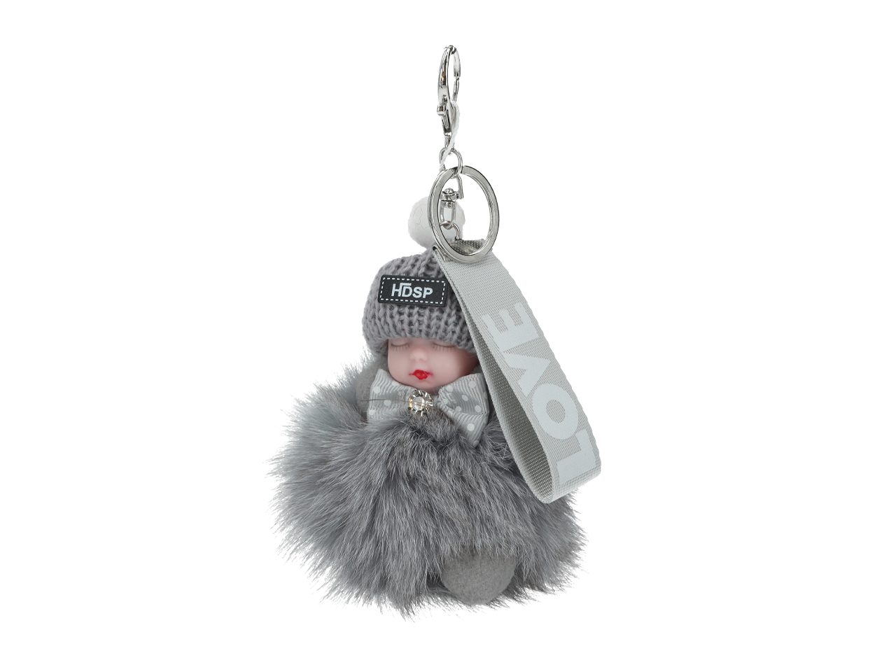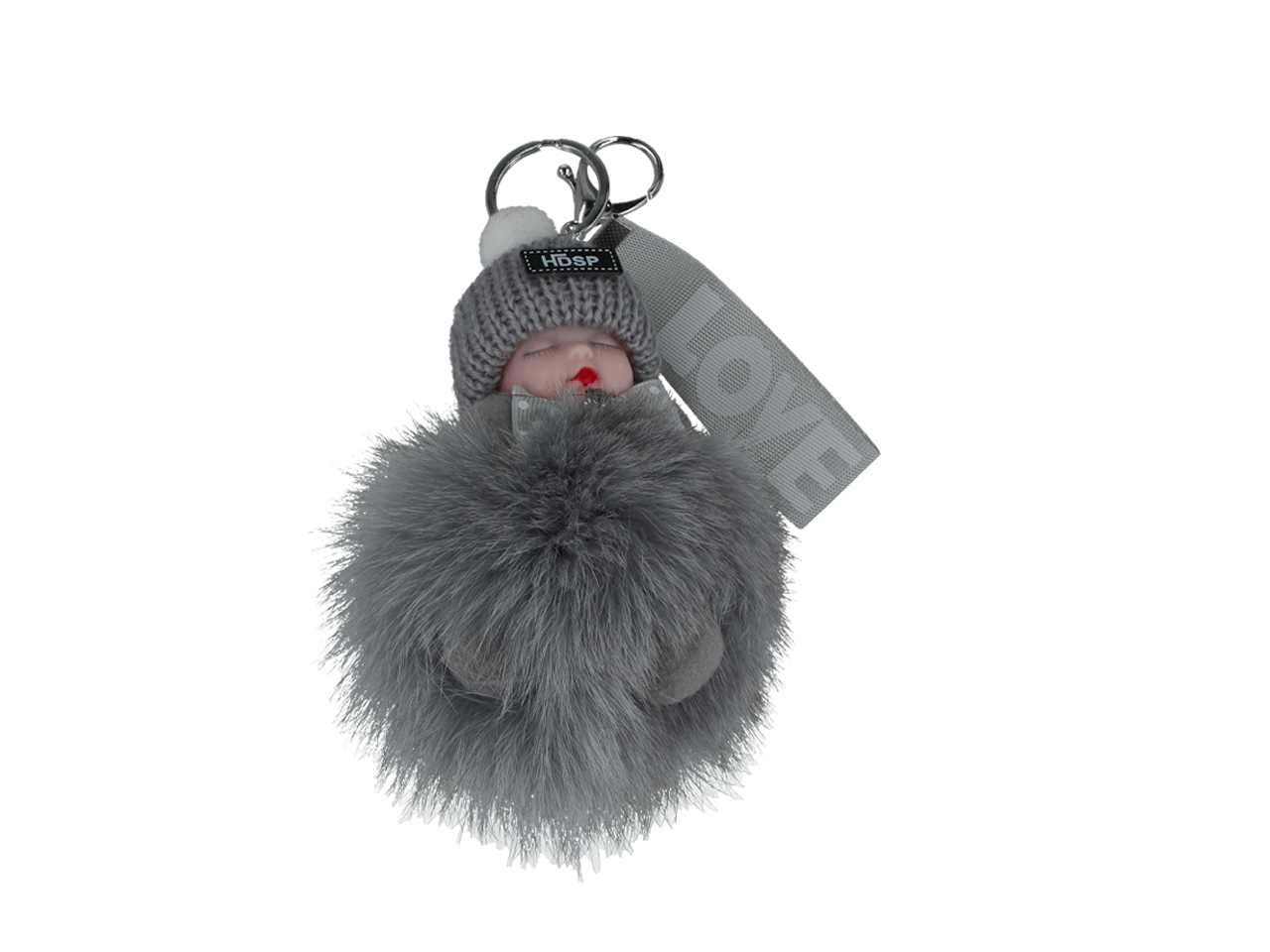 Breloczek do kluczy – Niemowlak, szary pompon