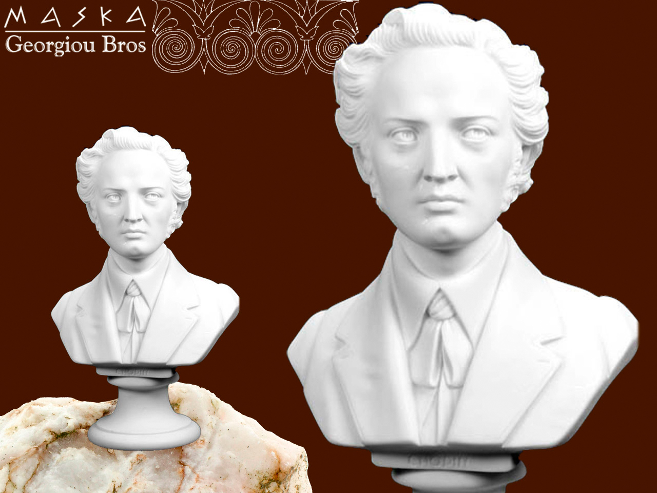Alabastrowe popiersie Chopina. światowej sławy pianisty. Od czasów starożytnych alabaster był wysoko cenionym kamieniem ozdobnym i dekoracyjnym. Niezliczona ilość wzorów jest inspiracją do tworzenia własnych niepowtarzalnych zbiorów.