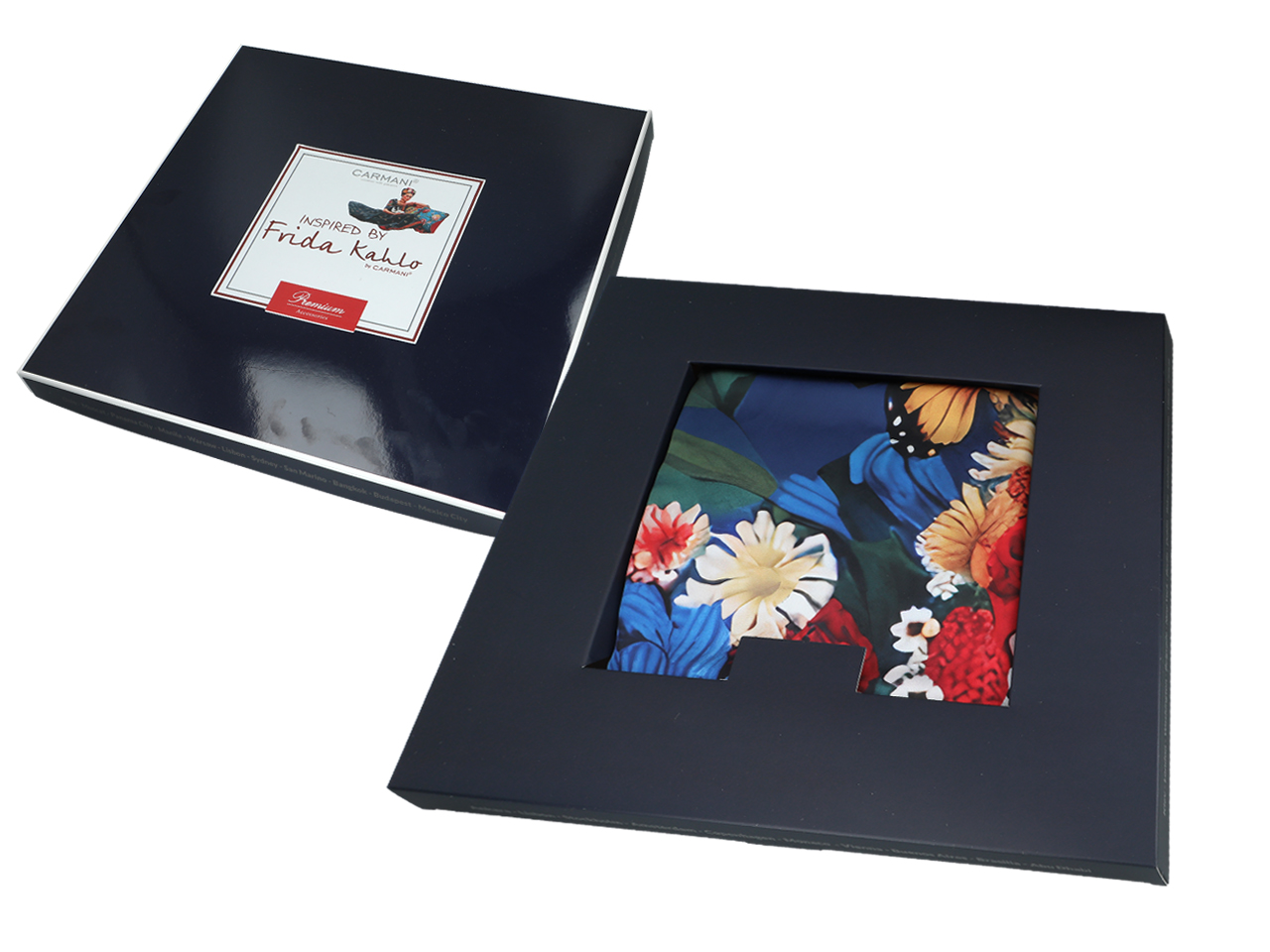 Chusty i szale marki CARMANI wykonane są z innowacyjnej tkaniny tamina szlachetna, która pozwala na wykonanie misternych wzorów przy zachowaniu jedwabistego dotyku.