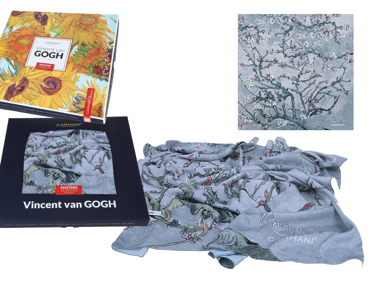 Chusta – V. van Gogh, Kwitnący Migdałowiec, srebrny (CARMANI)