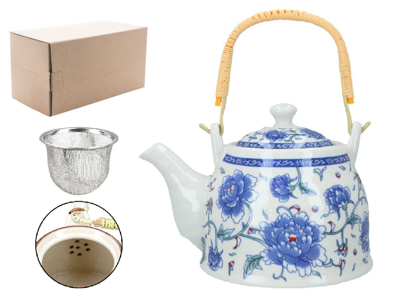 Gustowny, ceramiczny czajnik z metalowym zaparzaczem. Dostępny w kilku atrakcyjnych wzorach i kolorach. Ceramiczny czajnik utrzymuje temperaturę zaparzonej herbaty na długo.