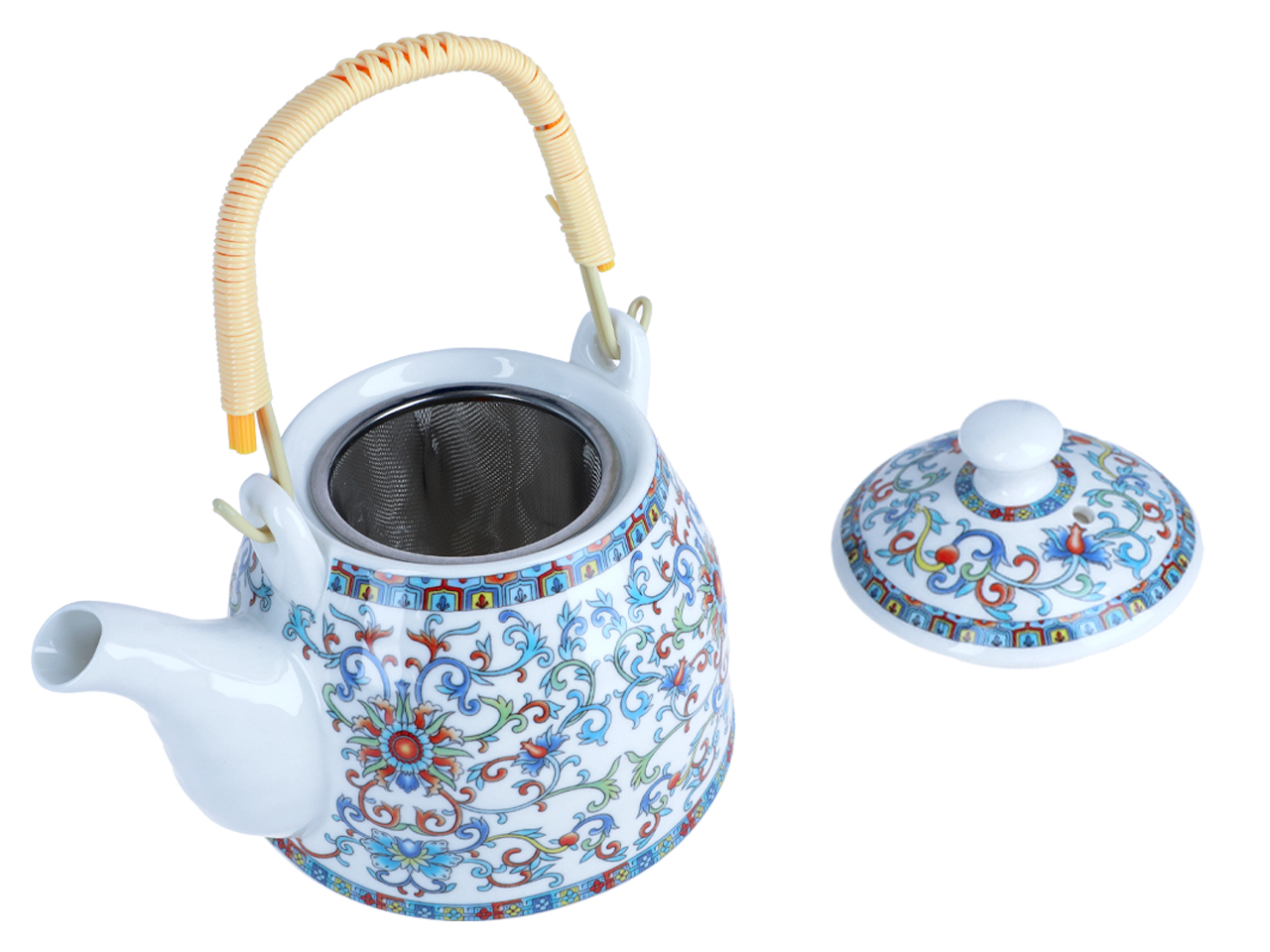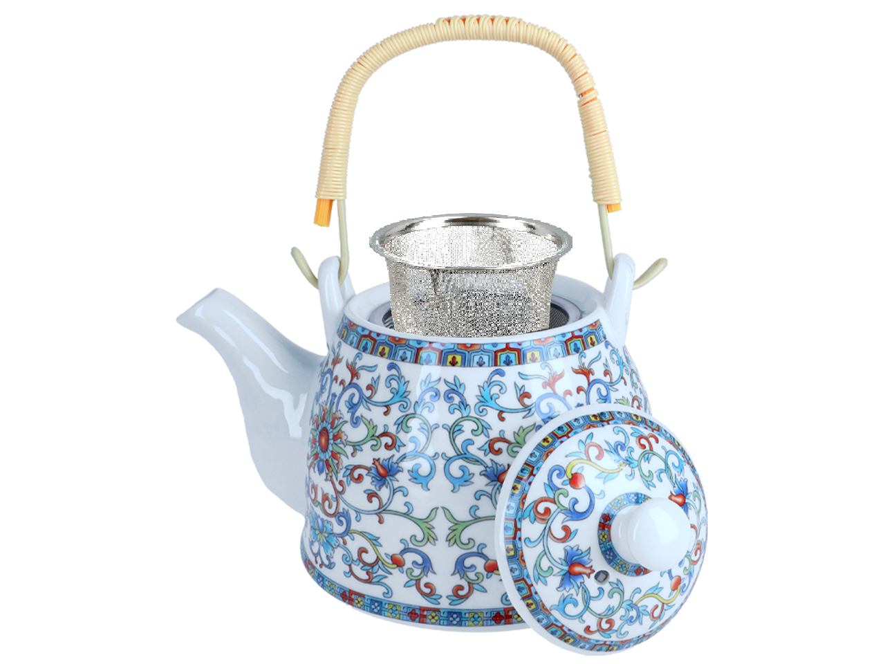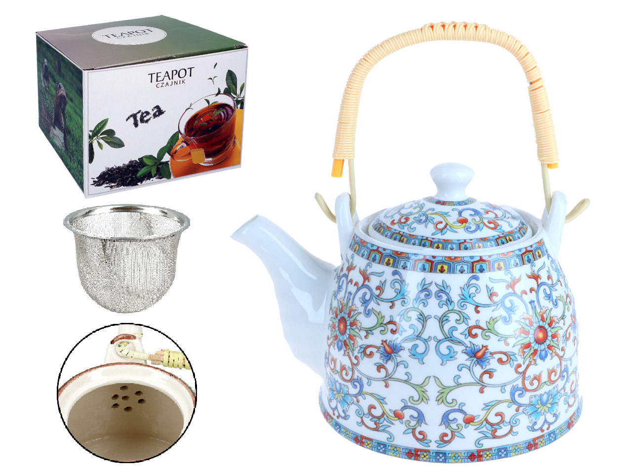Gustowny, ceramiczny czajnik z metalowym zaparzaczem. Dostępny w kilku atrakcyjnych wzorach i kolorach. Ceramiczny czajnik utrzymuje temperaturę zaparzonej herbaty na długo.
