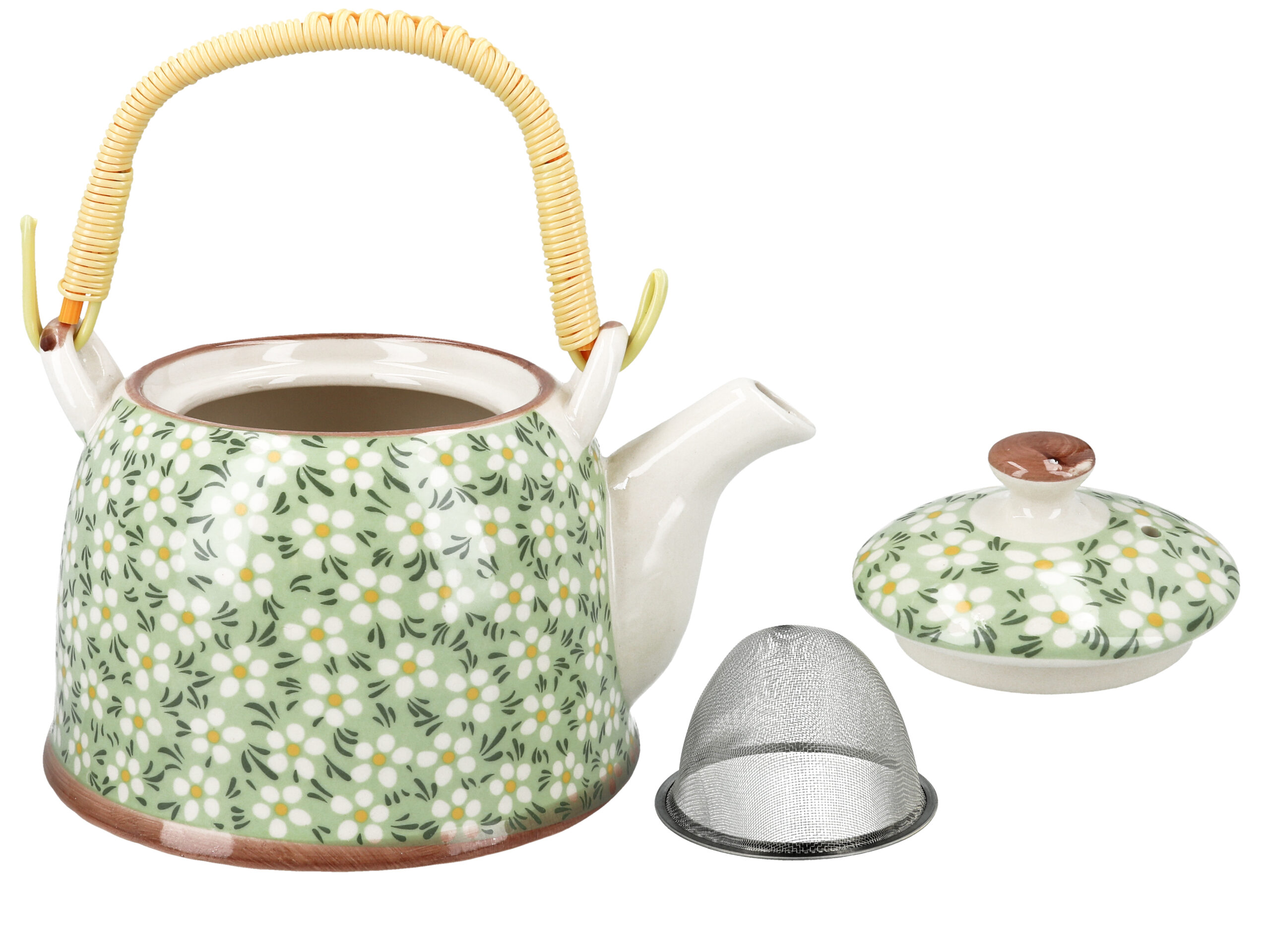 Gustowny, ceramiczny czajnik z metalowym zaparzaczem. Dostępny w kilku atrakcyjnych wzorach i kolorach. Ceramiczny czajnik utrzymuje temperaturę zaparzonej herbaty na długo.
