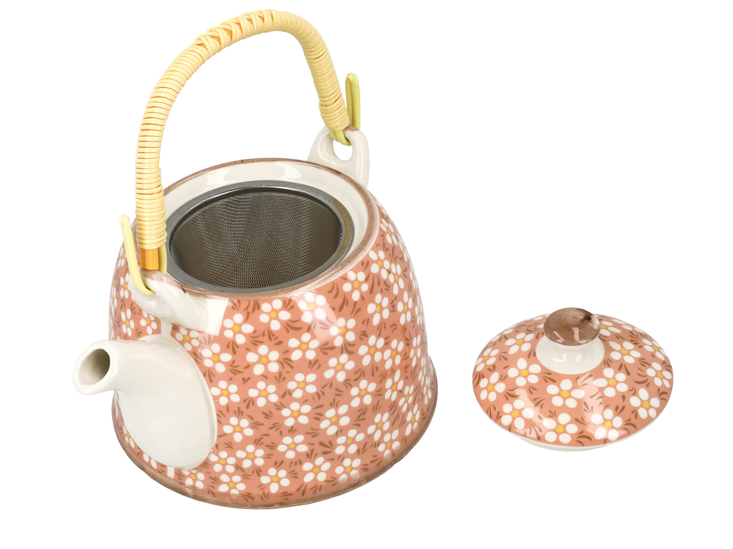 Gustowny, ceramiczny czajnik z metalowym zaparzaczem. Dostępny w kilku atrakcyjnych wzorach i kolorach. Ceramiczny czajnik utrzymuje temperaturę zaparzonej herbaty na długo.