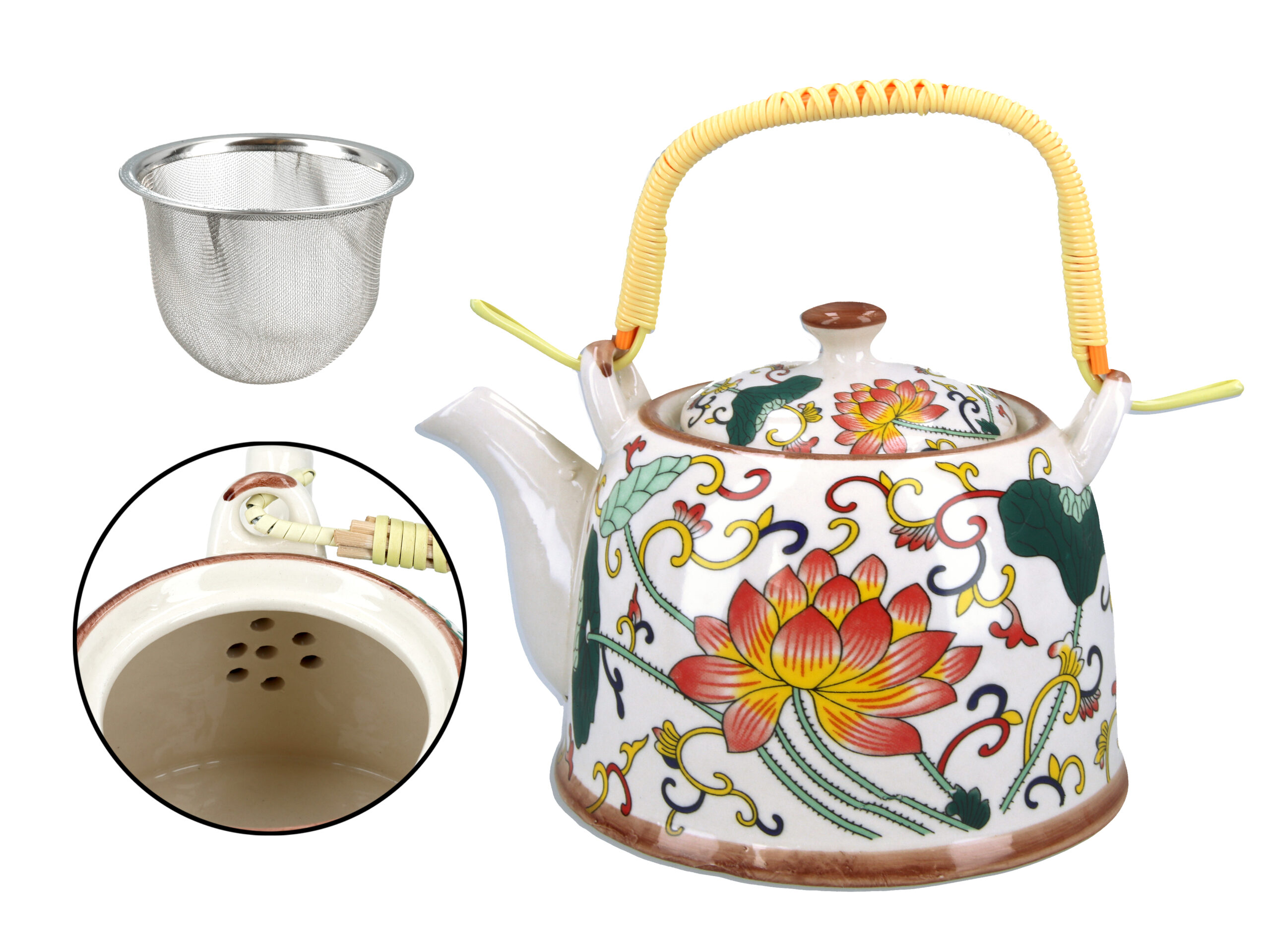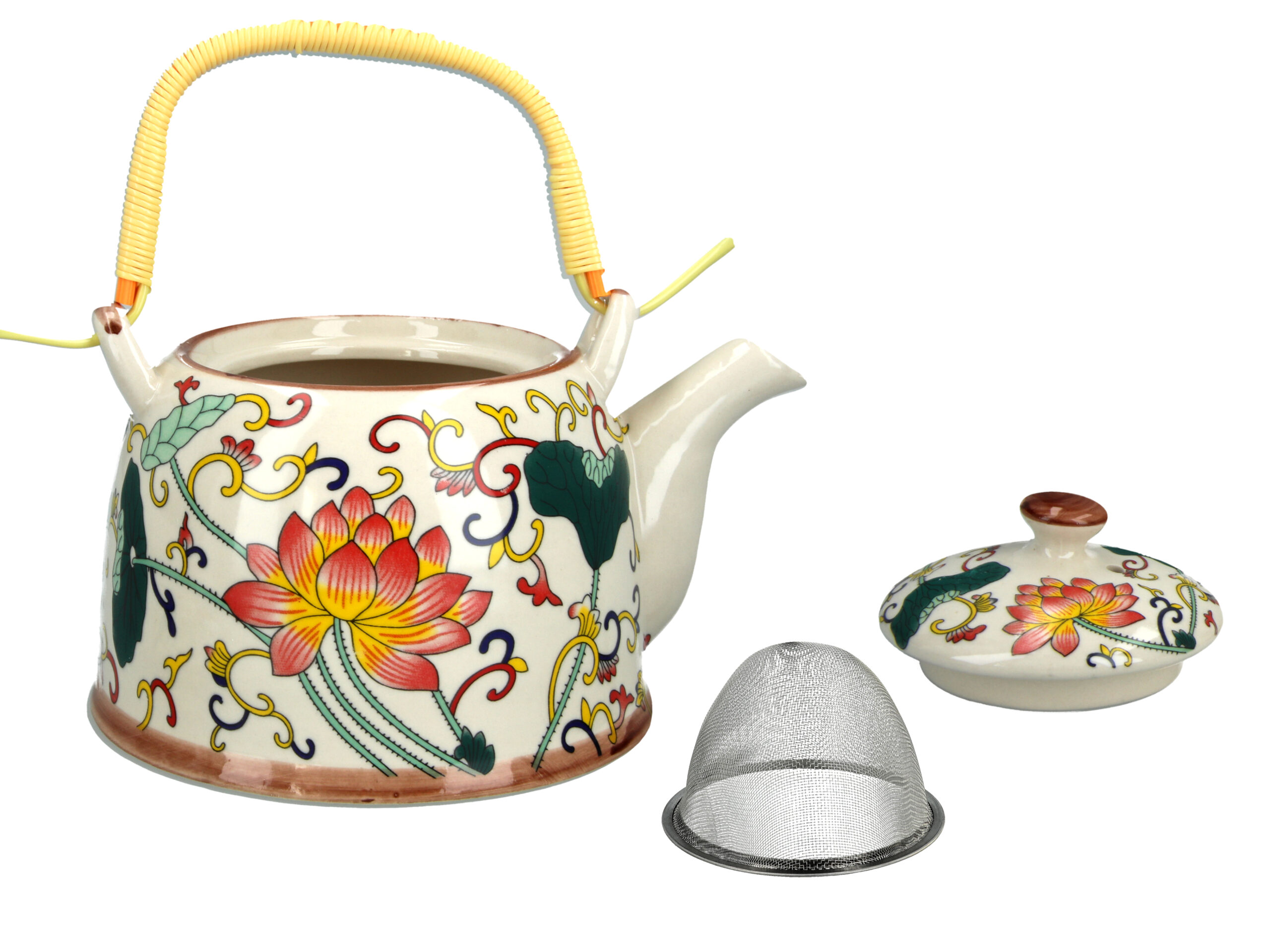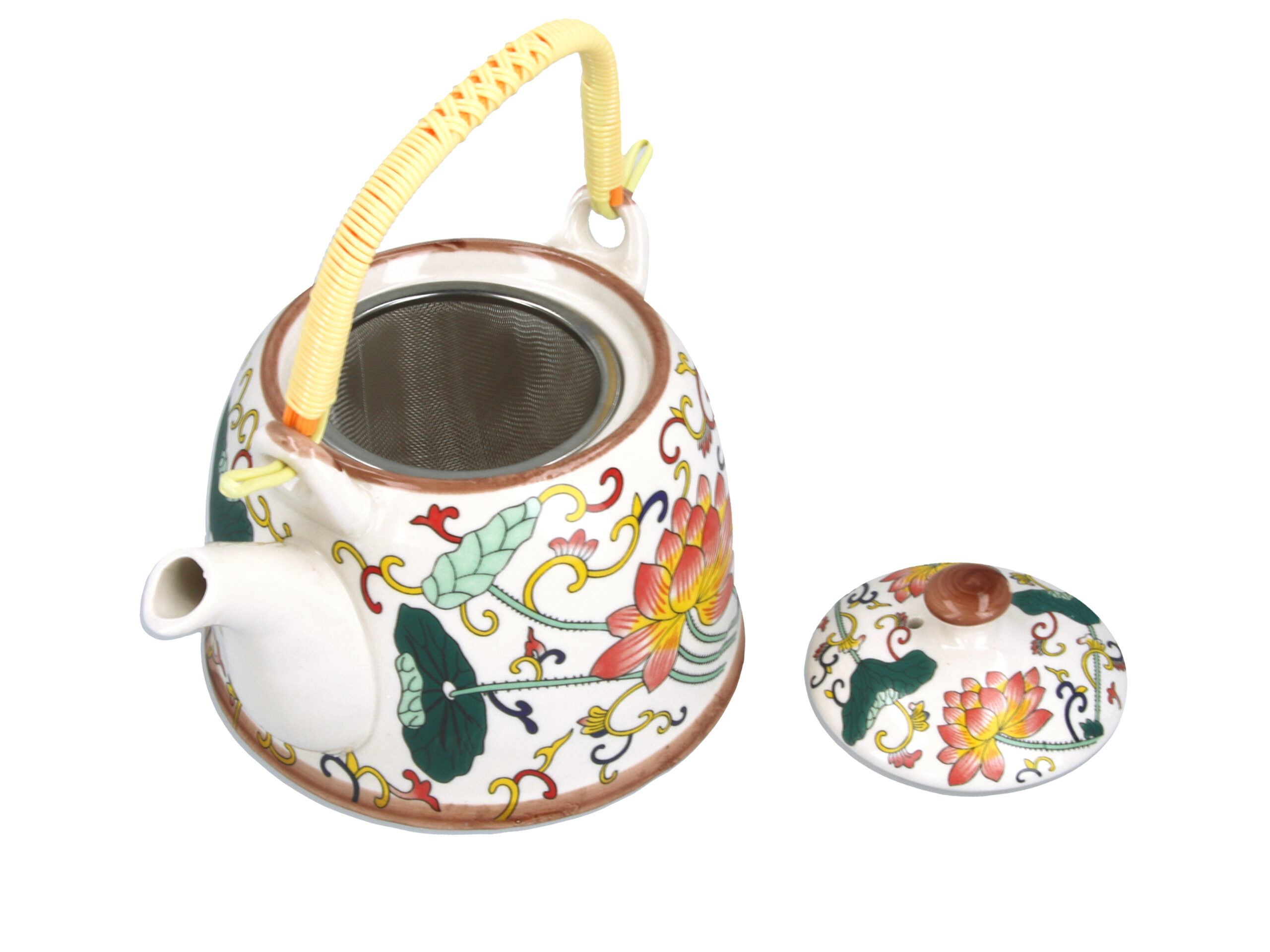 Gustowny, ceramiczny czajnik z metalowym zaparzaczem. Dostępny w kilku atrakcyjnych wzorach i kolorach. Ceramiczny czajnik utrzymuje temperaturę zaparzonej herbaty na długo.