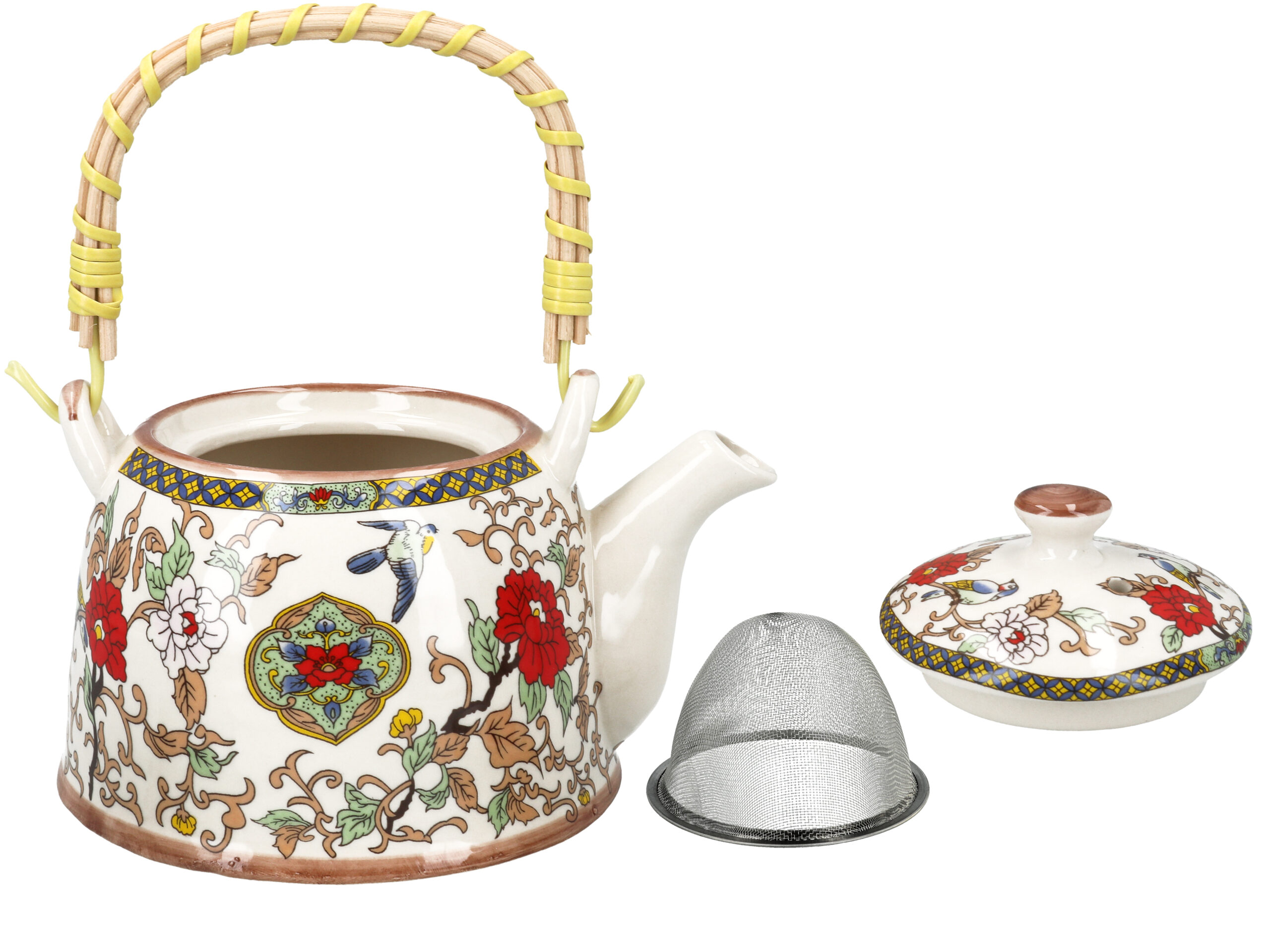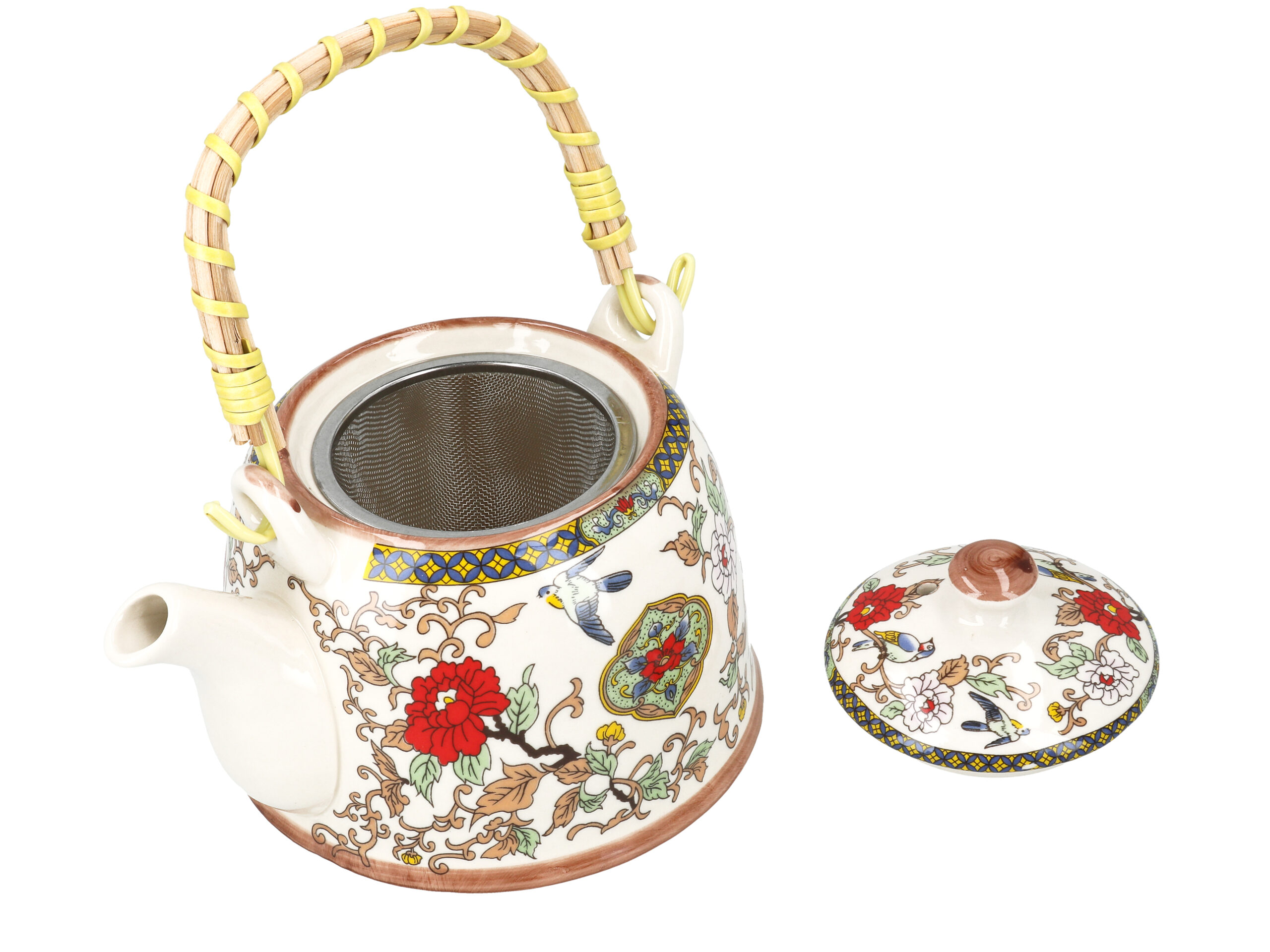 Gustowny, ceramiczny czajnik z metalowym zaparzaczem. Dostępny w kilku atrakcyjnych wzorach i kolorach. Ceramiczny czajnik utrzymuje temperaturę zaparzonej herbaty na długo.
