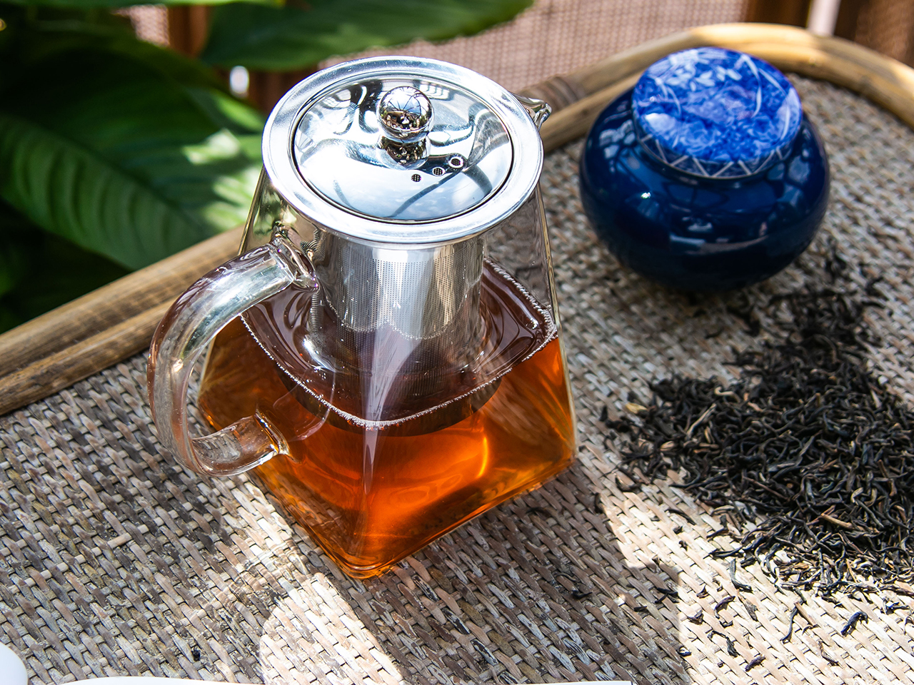 Czajnik szklany z zaparzaczem. Doskonały do przyządzenia naszej ulubionej herbatki na chłodne wieczory.