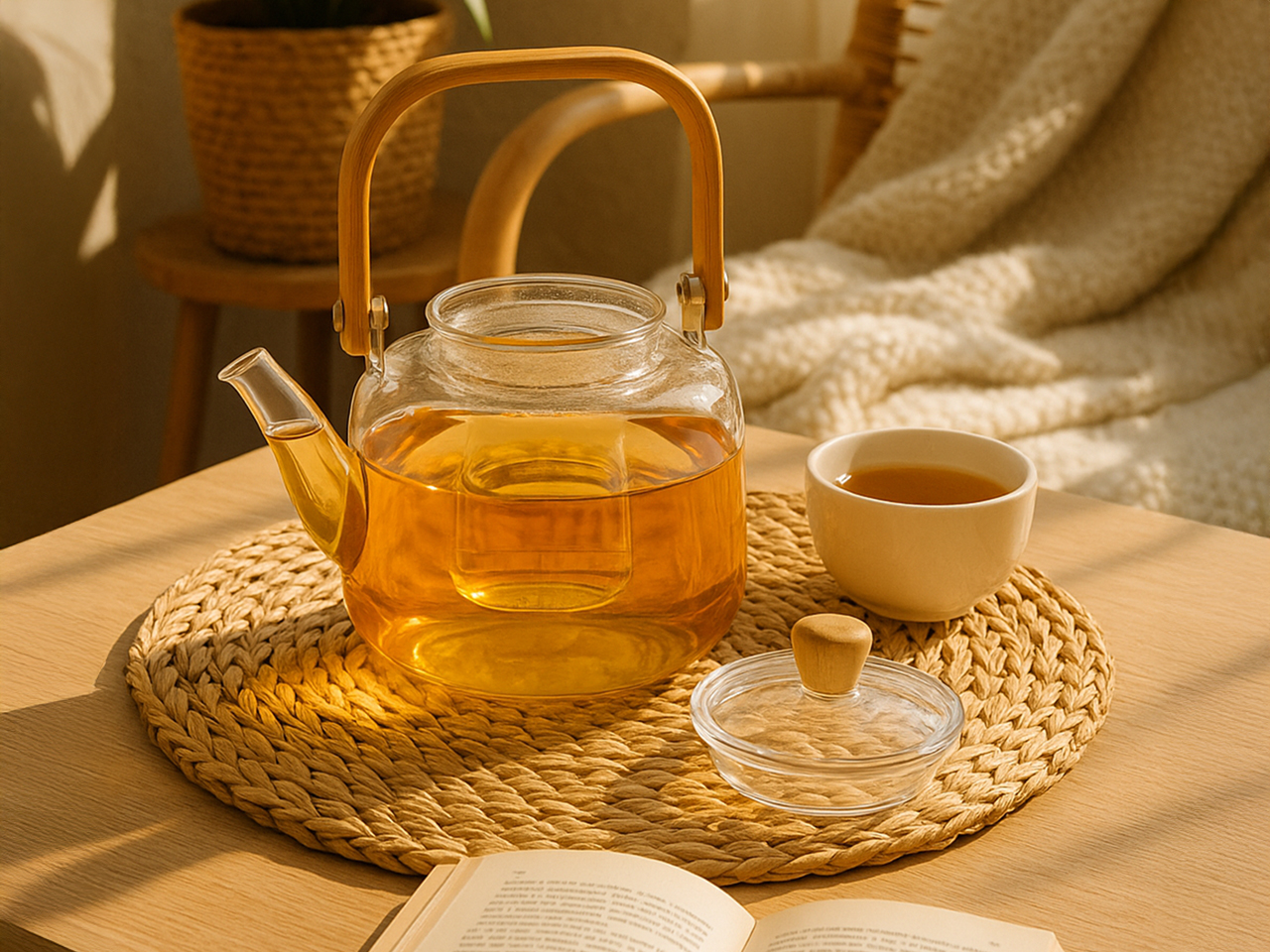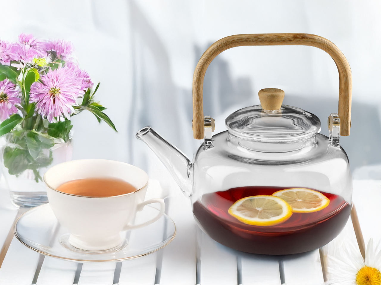 Gustowny, szklany czajnik. Doskonały do codziennego użytku, ale również dobrze się prezentuje podając go gościom na stół.