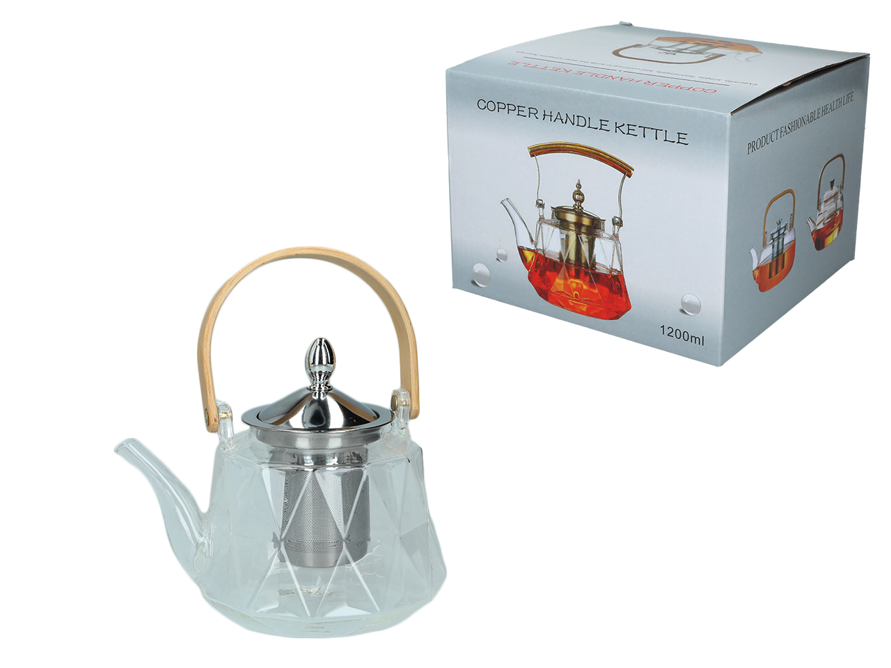 Szklany czajnik z zaparzaczem. Świetny do codziennego użytku, ale również dobrze się prezentuje podając go gościom na stół.