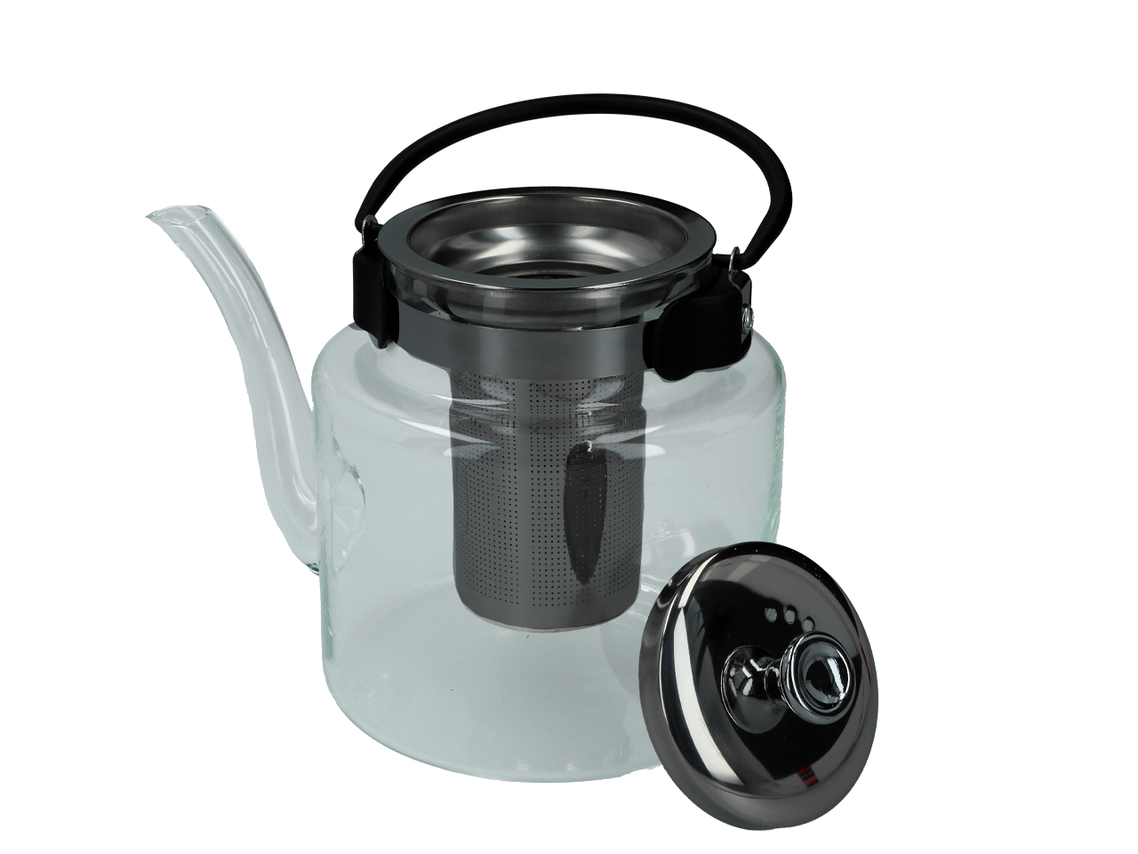 Szklany czajnik z zaparzaczem. Świetny do codziennego użytku, ale również dobrze się prezentuje podając go gościom na stół.