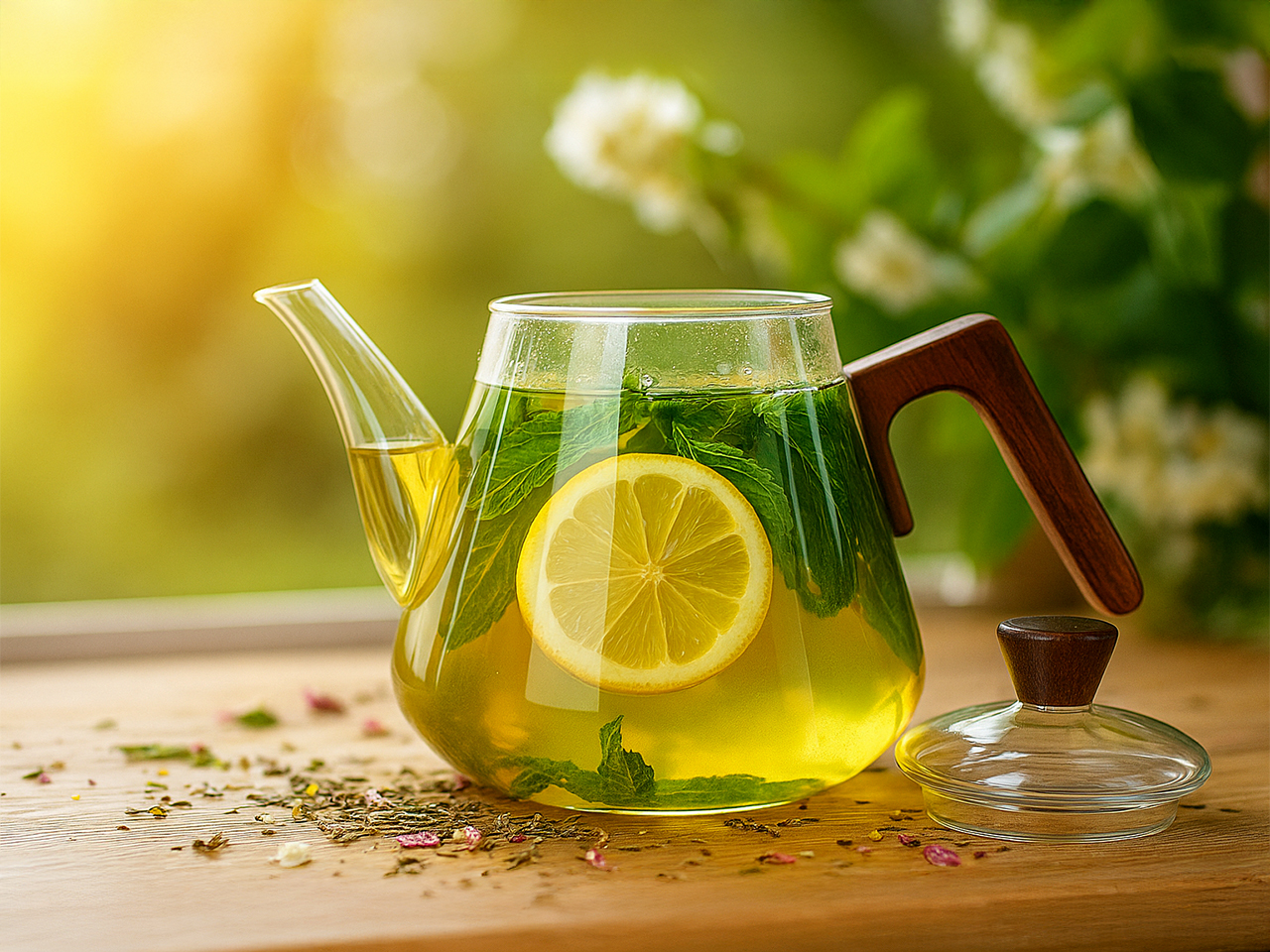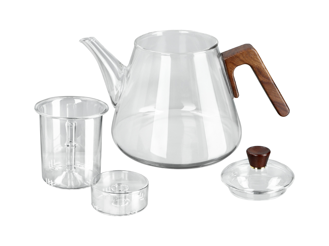 Szklany czajnik z zaparzaczem. Doskonały do przyrządzenia naszej ulubionej herbatki na chłodne wieczory.
