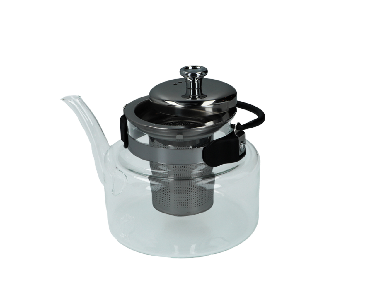 Szklany czajnik z zaparzaczem. Świetny do codziennego użytku, ale również dobrze się prezentuje podając go gościom na stół.