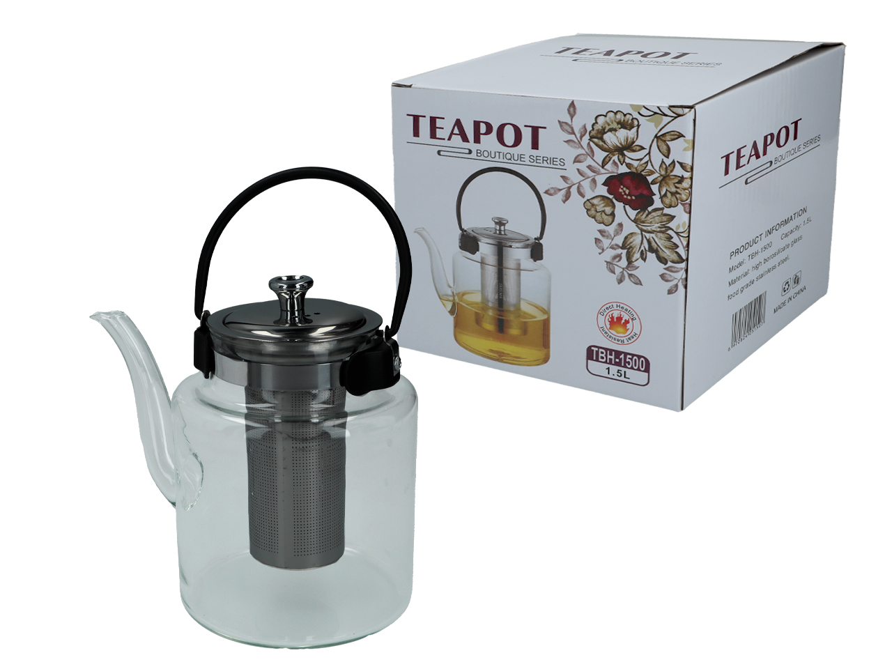 Szklany czajnik z zaparzaczem. Świetny do codziennego użytku, ale również dobrze się prezentuje podając go gościom na stół.