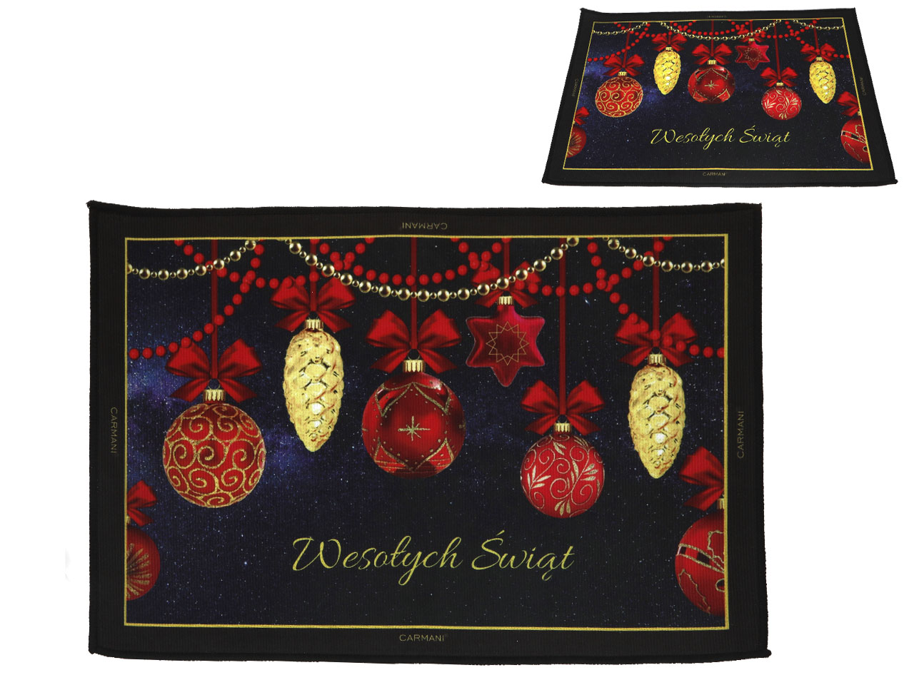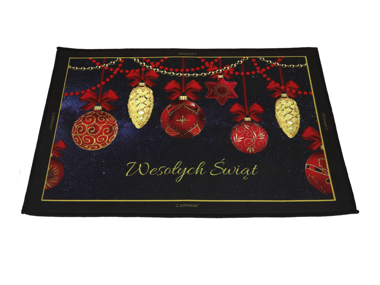 Dywanik z motywem Świąt Bożego Narodzenia to dekoracyjny dodatek, który wprowadza świąteczną atmosferę do każdego wnętrza. Wykonany z łatwego w pielęgnacji materiału z kolorowymi wzorami, które przedstawiają klasyczne symbole świąteczne.