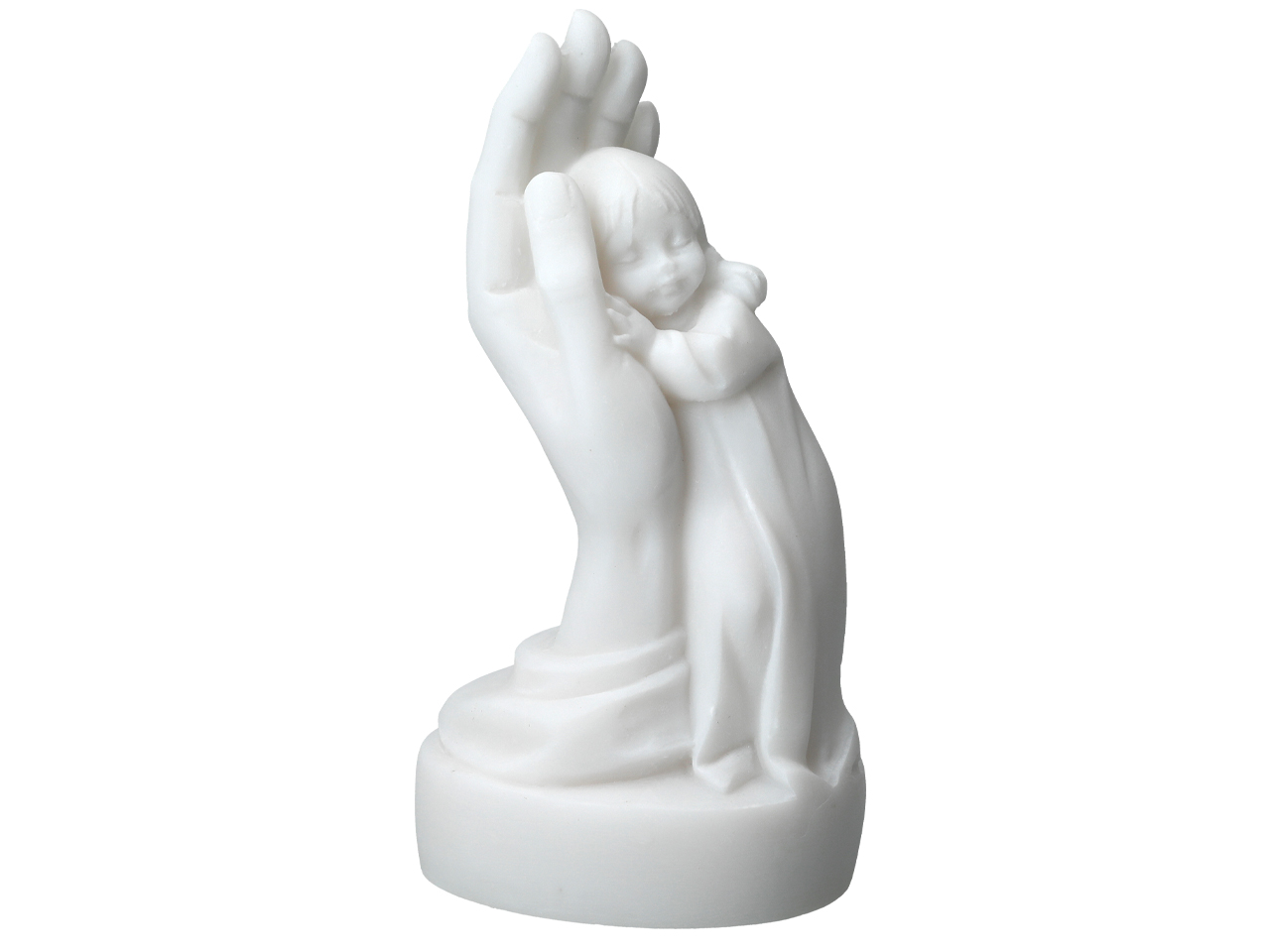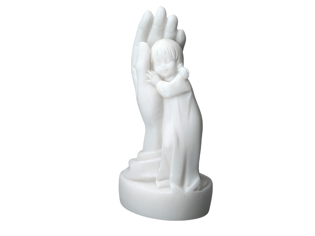 Alabastrowa figurka przedstawiająca dziewczynkę otuloną dłonią. Od czasów starożytnych alabaster był wysoko cenionym kamieniem ozdobnym i dekoracyjnym. Niezliczona ilość wzorów jest inspiracją do tworzenia własnych niepowtarzalnych