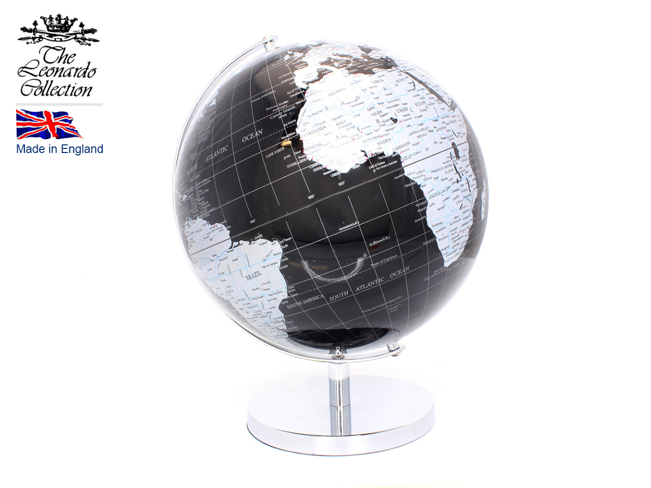 Globus ozdobny utrzymany w odcieniach czerni i srebra idealnie wkomponuje się w aranżacje nowoczesne