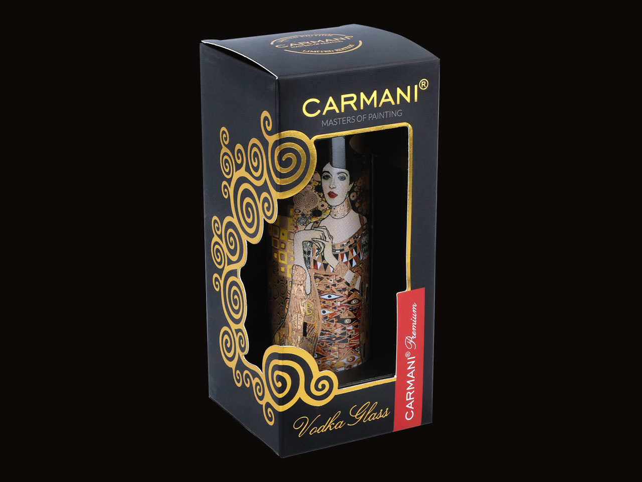 Kieliszek do wódki – G. Klimt. Adele Bloch Bauer I (CARMANI) + komplet 4 podkładek korkowych