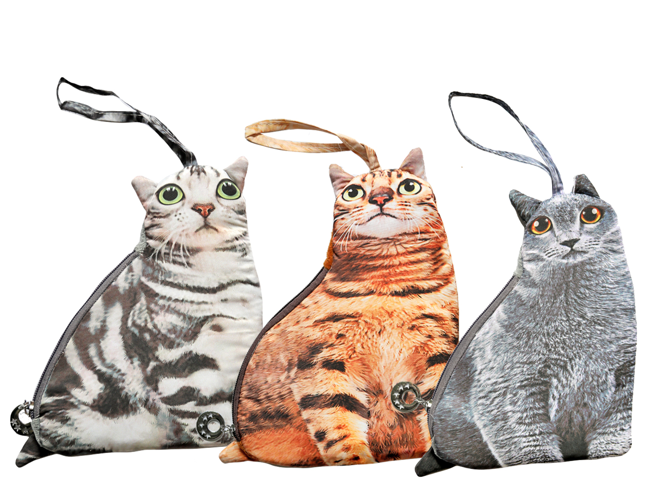 Gustowna, wielofunkcyjna torebeczka w kształcie kota. Można ją używać jako mała torebeczka, kosmetyczka lub po prostu do przechowywania naszych drobiazgów.