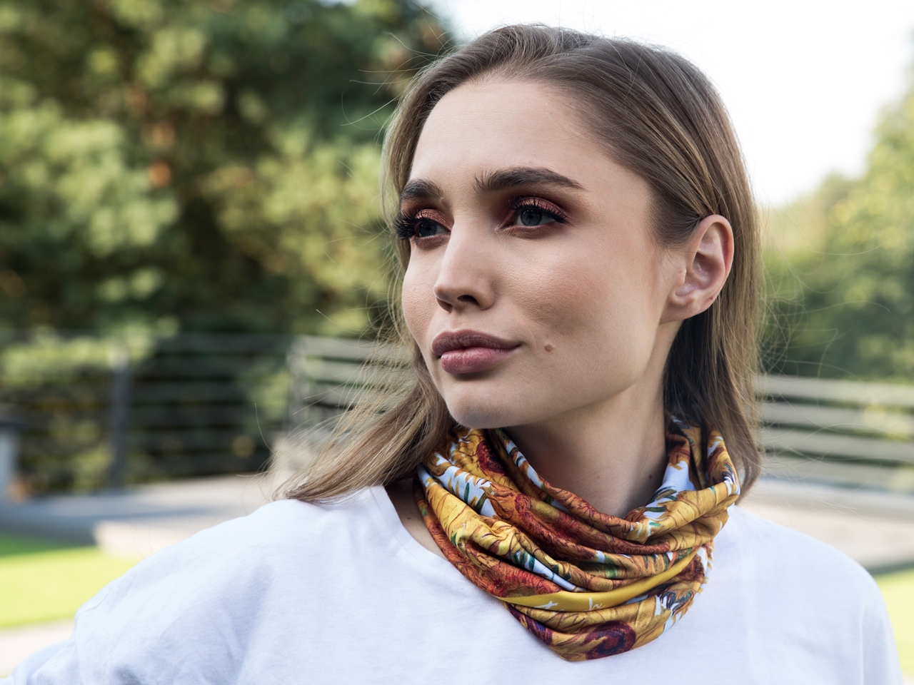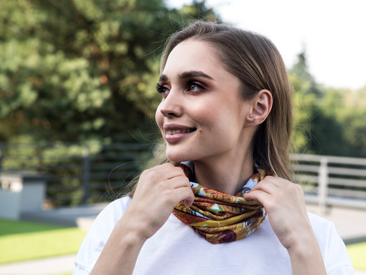 Nie lubisz maseczek? Proponujemy miękką, elastyczną i przyjemną w dotyku chustę/komin w wielu oryginalnych wzorach do wyboru. Chustę można użyć jako alternatywę maseczki – do osłony ust i nosa, ozdobę do włosów lub nosić na szyi.