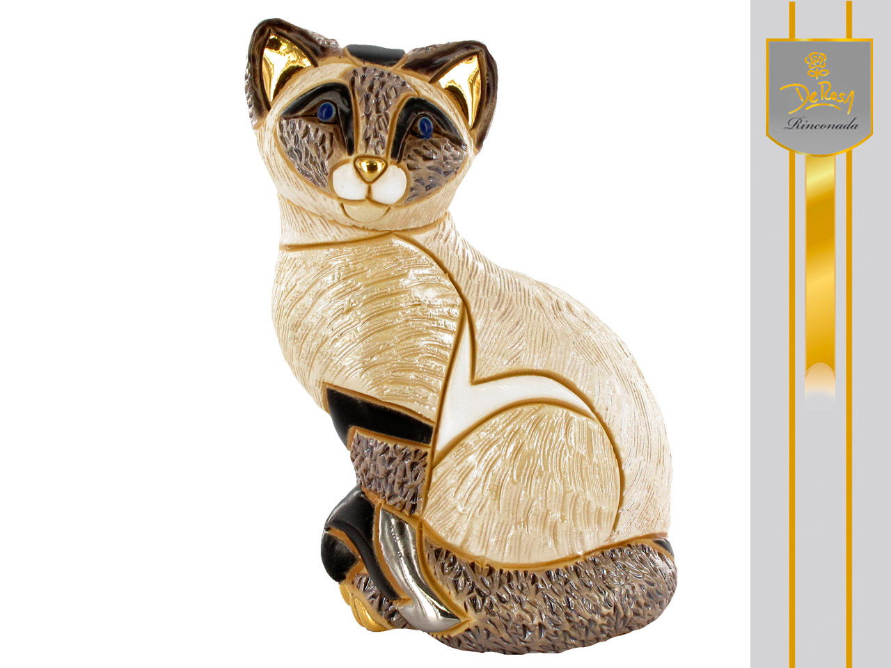 Bajeczna figurka przedstawiająca dumnego kota syjamskiego z pięknymi zdobieniami. Niezwykłość zbioru polega na tym, że zakup 4 figurek z serii pozwoli Wam stworzyć uroczą kocią rodzinkę.