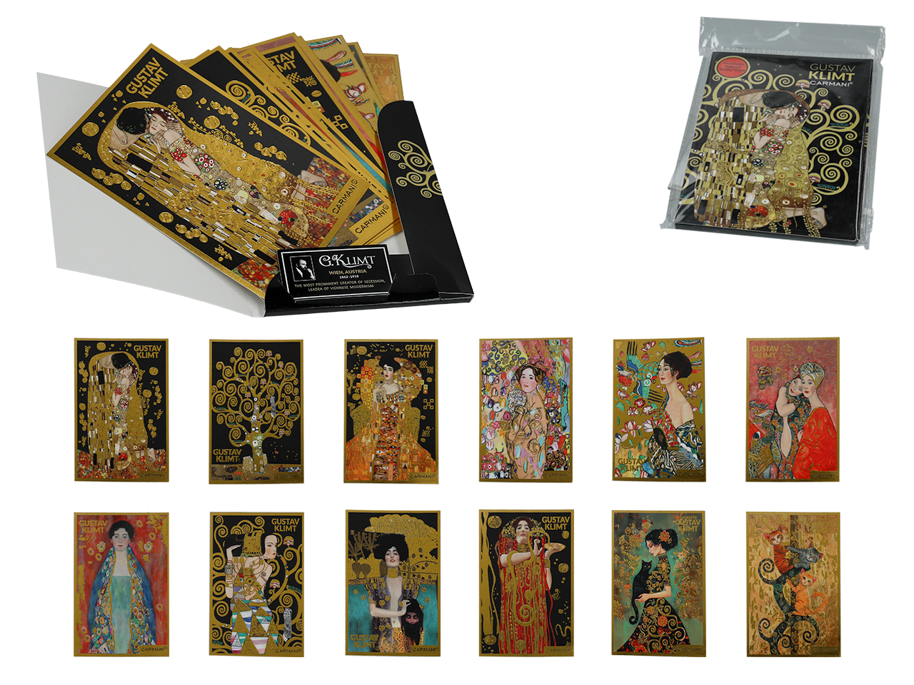 Kpl. 12 pocztówek w ozdobnej teczce – G. Klimt, mix wzorów (CARMANI)