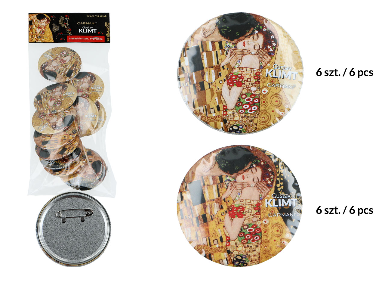 Kpl. 12 przypinek – G. Klimt, Pocałunek (CARMANI)