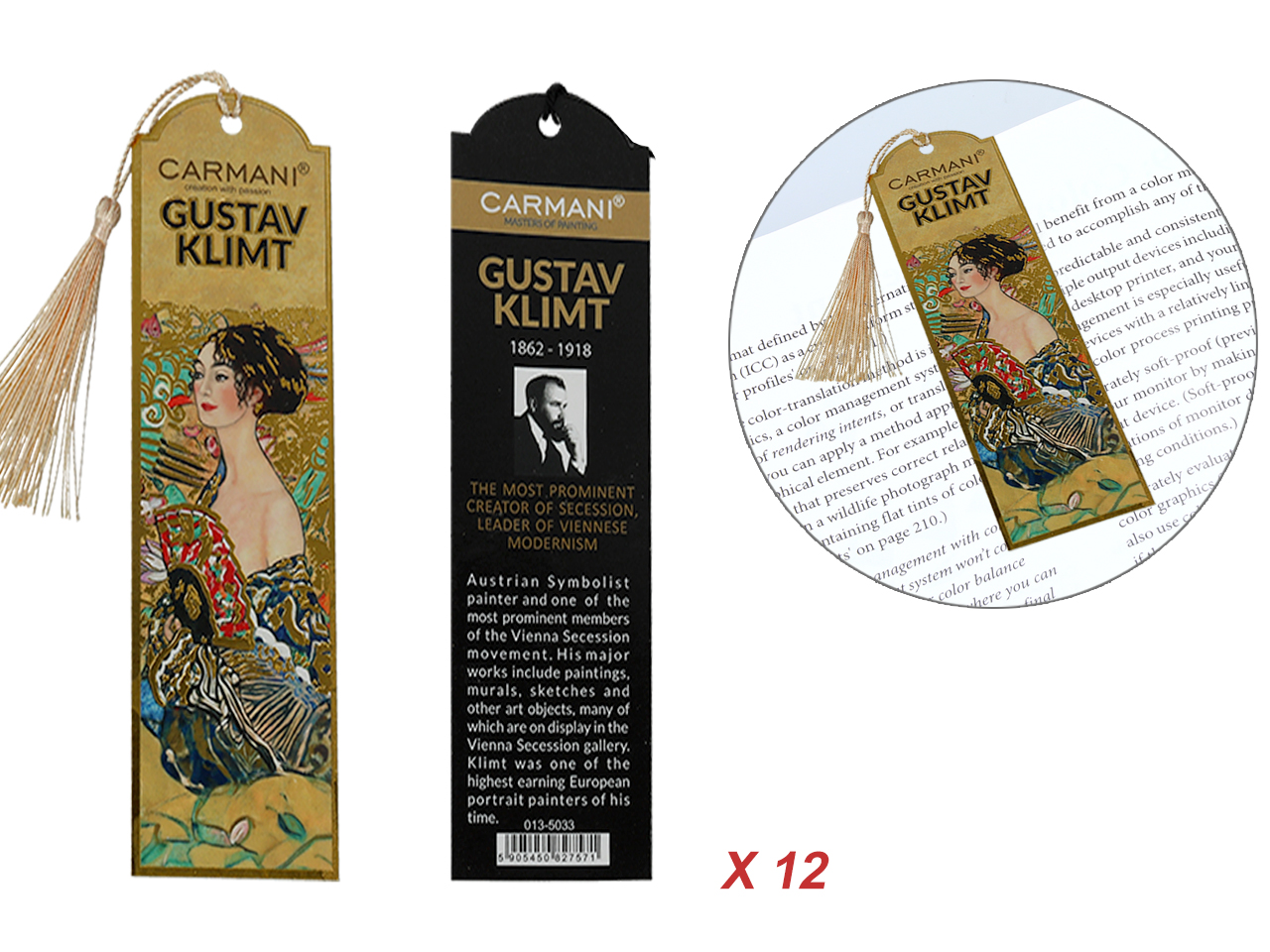 Kpl. 12 zakładek do książki – G. Klimt, Kobieta z wachlarzem (CARMANI)