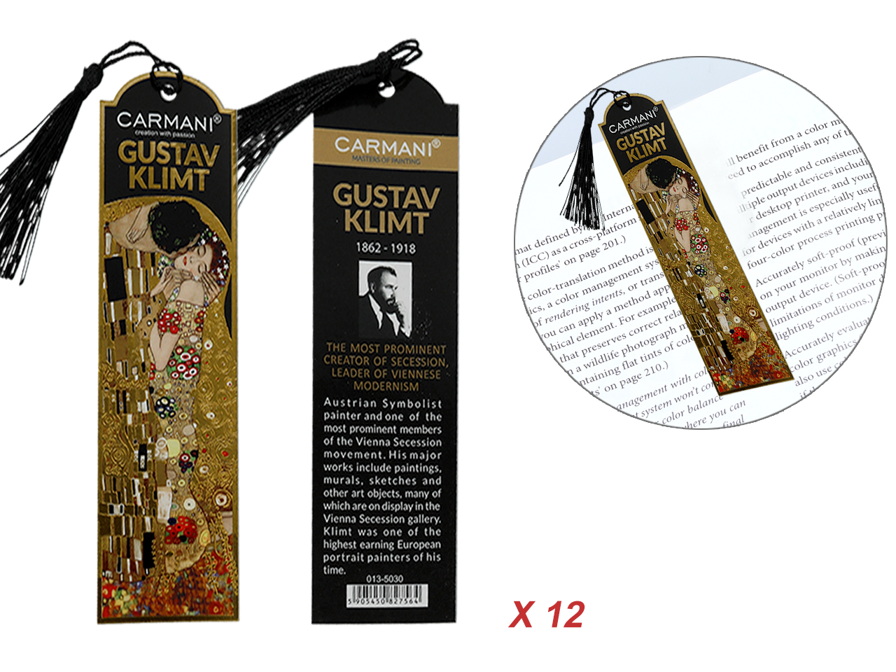 Kpl. 12 zakładek do książki – G. Klimt, Pocałunek (CARMANI)