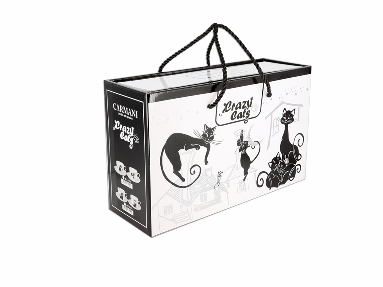 Niezwykły komplet 2 filiżanek z wizurunkami świetnych kociaków. Zapakowane w piękne, prezentowe pudełko z uchwytami, przypominające mini walizkę – idealnie nadaje się na prezent.