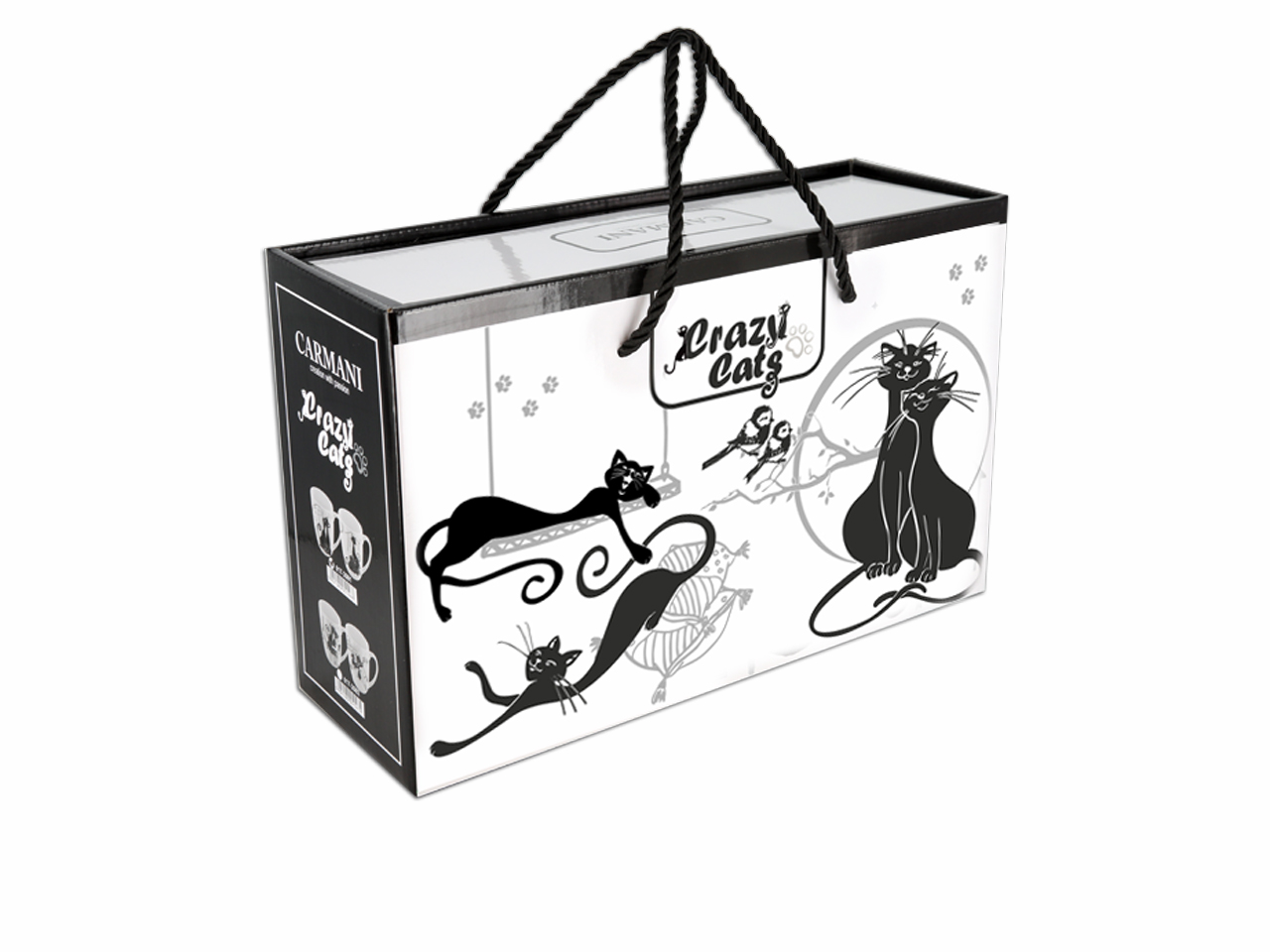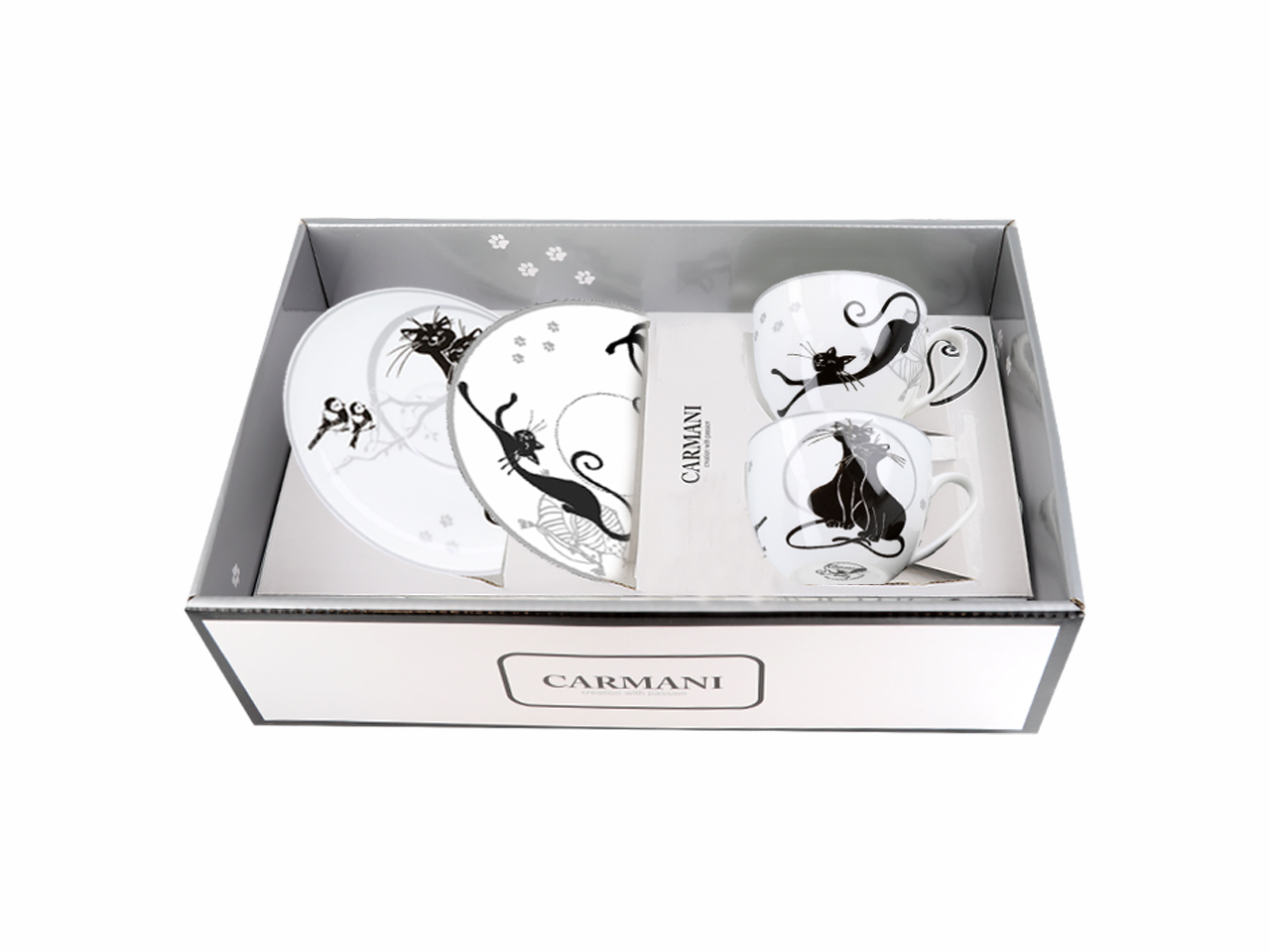 Niezwykły komplet 2 filiżanek z wizurunkami świetnych kociaków. Zapakowane w piękne, prezentowe pudełko z uchwytami, przypominające mini walizkę – idealnie nadaje się na prezent.