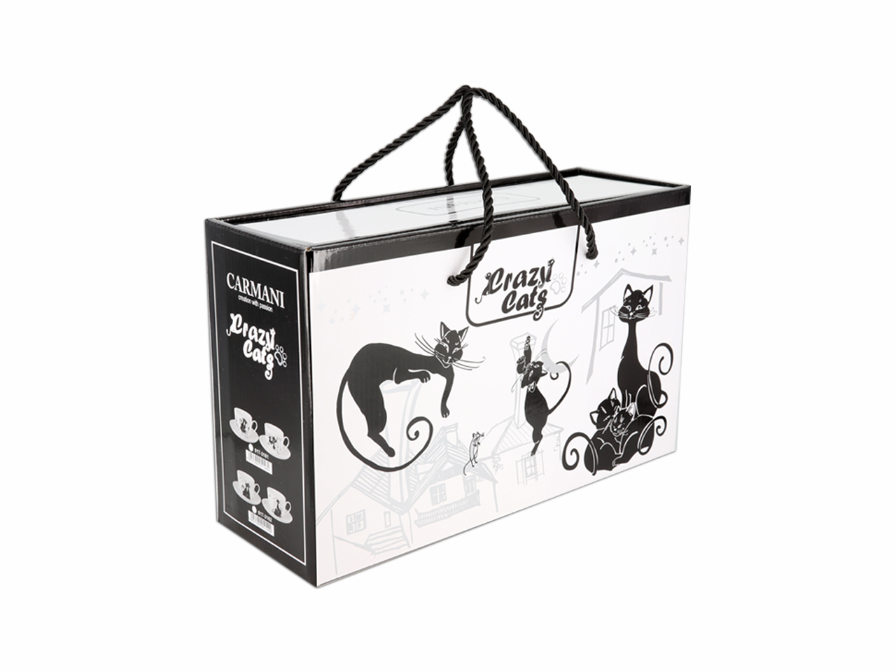 Niezwykły komplet 2 filiżanek z wizurunkami świetnych kociaków. Zapakowane w piękne, prezentowe pudełko z uchwytami, przypominające mini walizkę – idealnie nadaje się na prezent.