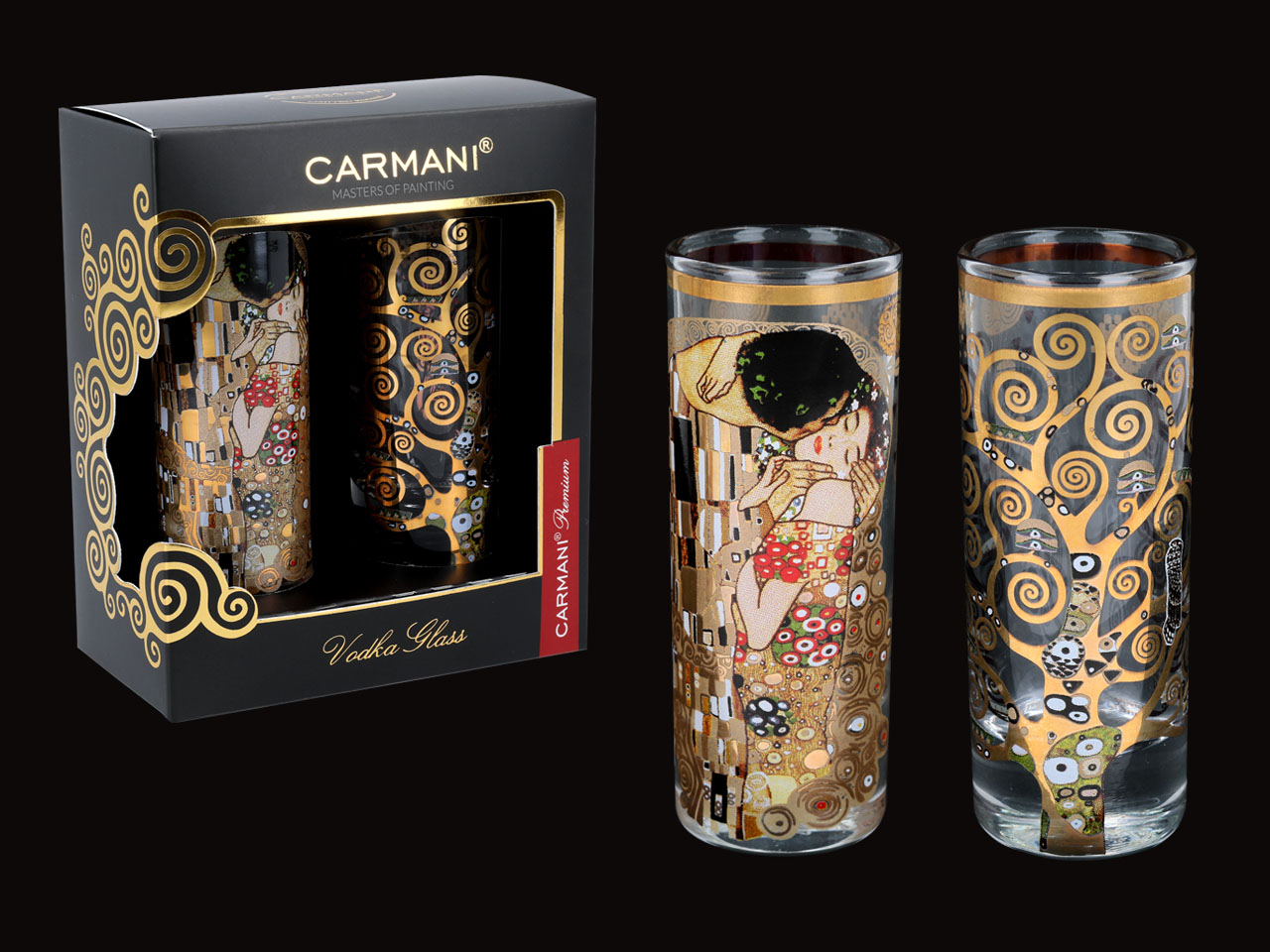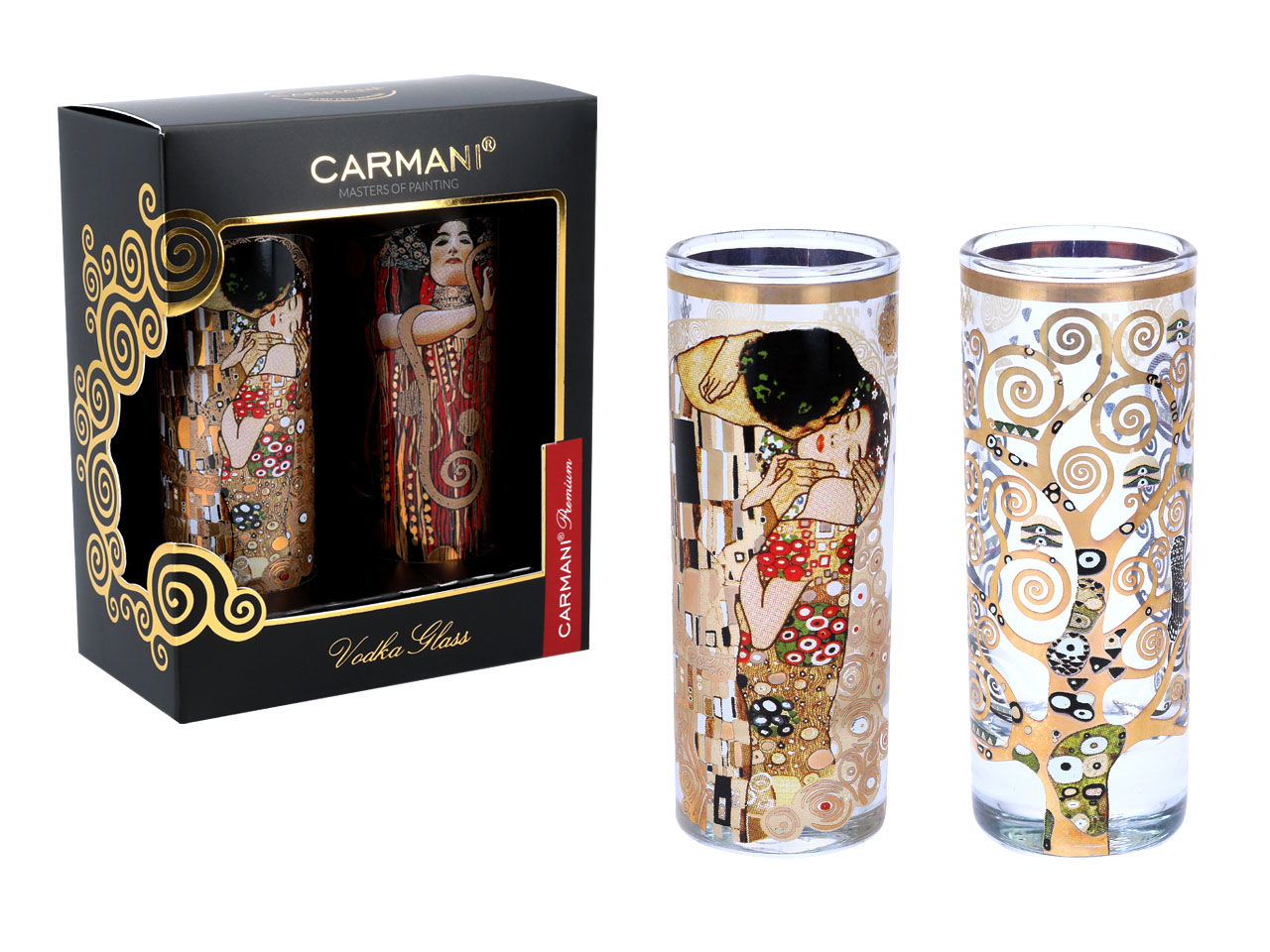 Kpl. 2 kieliszków do wódki – G. Klimt. Pocałunek + Drzewo (CARMANI)
