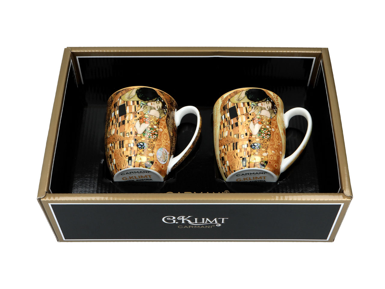 Kpl. 2 kubków – G. Klimt, Pocałunek, kremowe i brązowe tło (CARMANI)