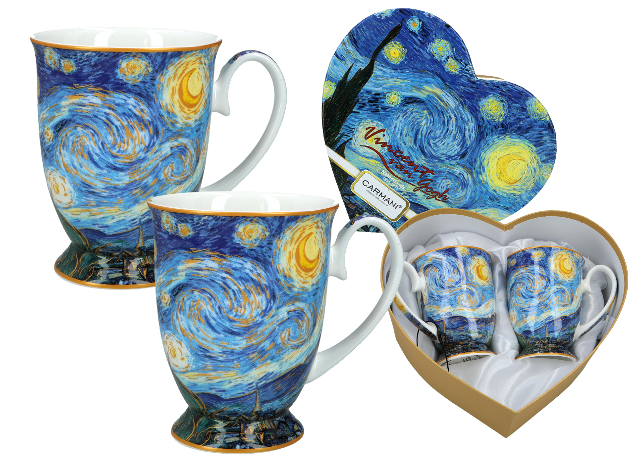 Kpl. 2 kubków w sercu – V. van Gogh, Gwiaździsta noc (CARMANI)