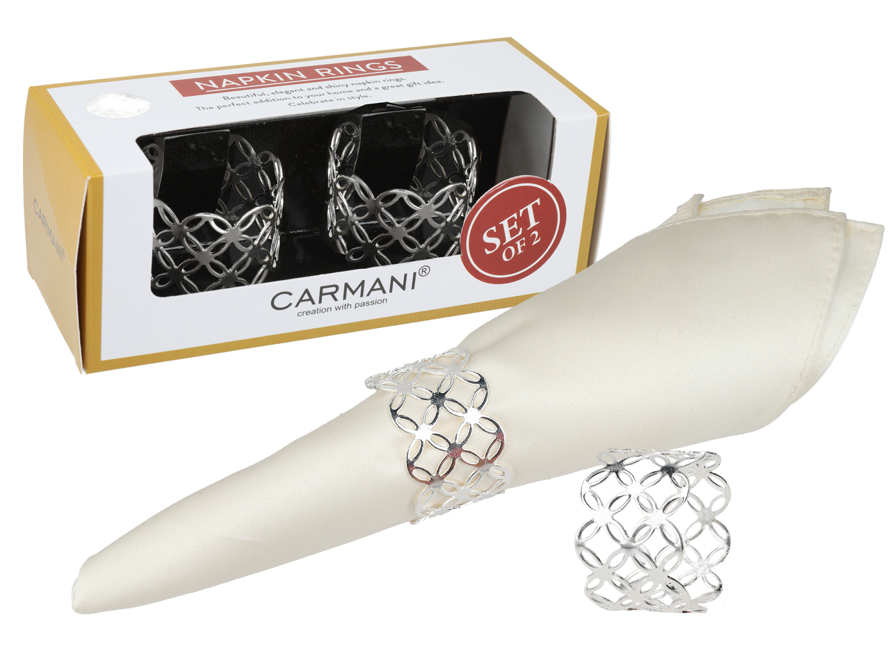 Kpl. 2 Pierścieni na serwetkę – Obrączki ażurowe, srebrna