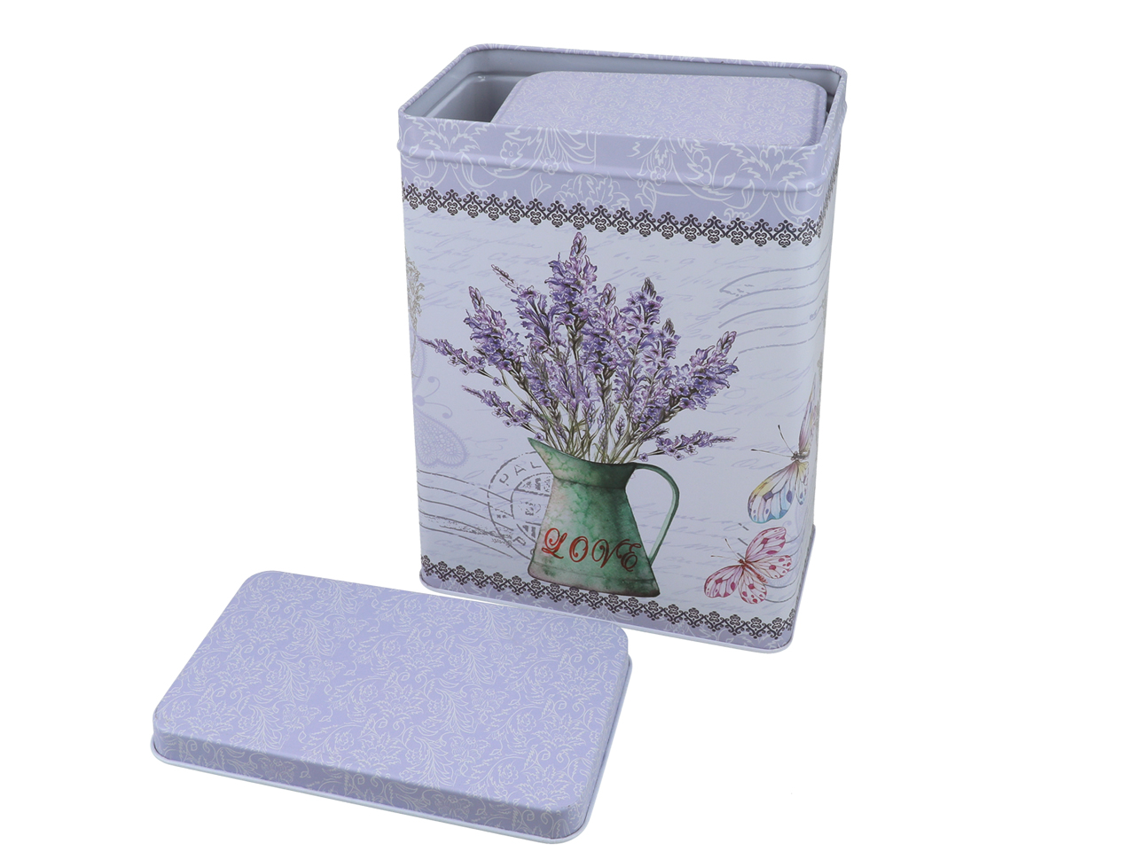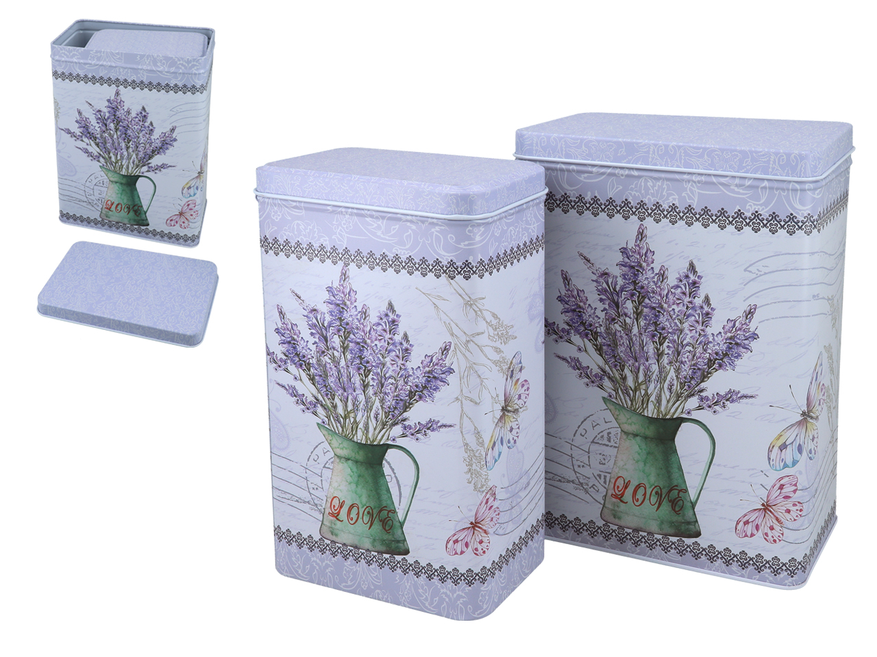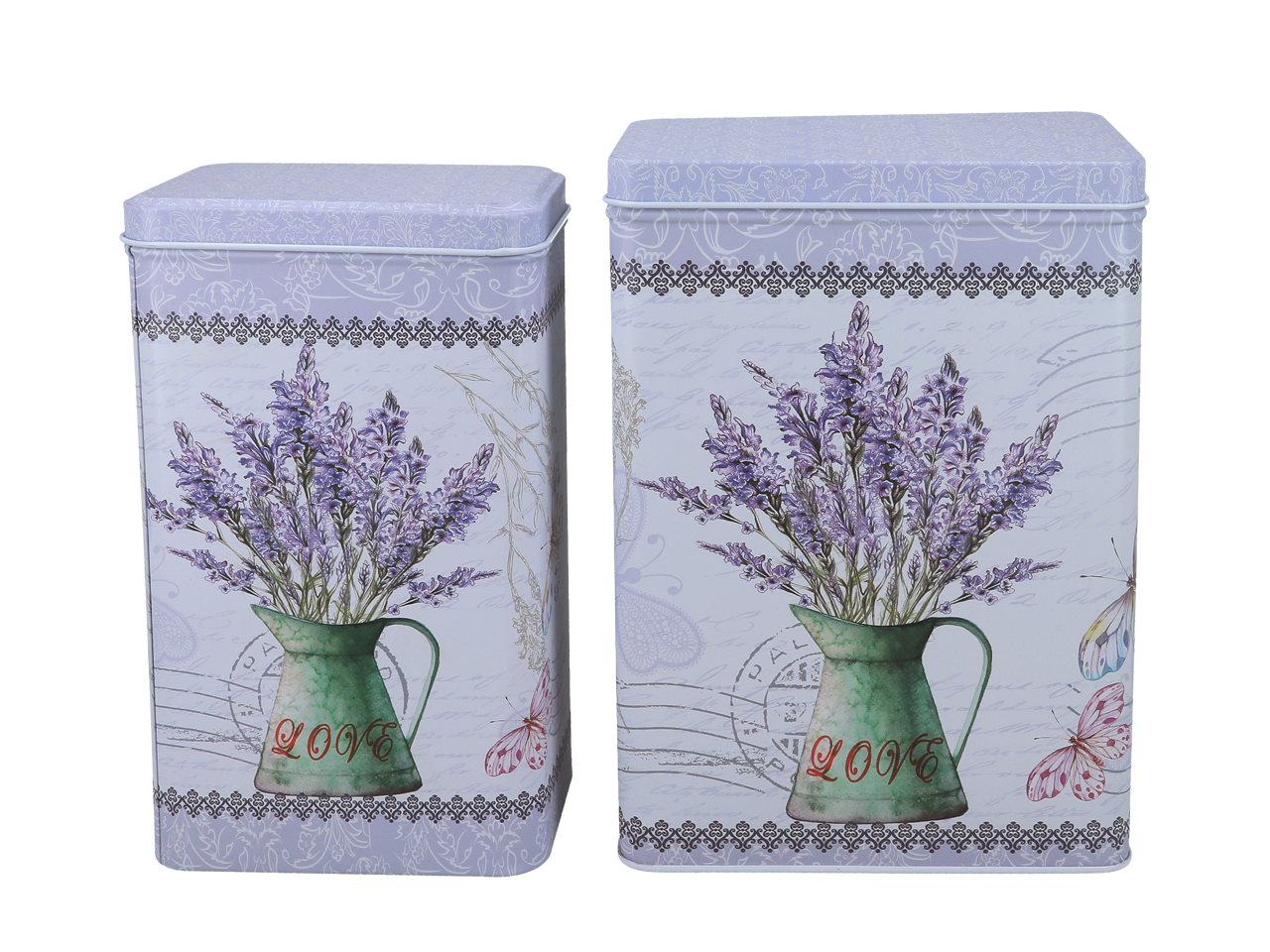 Komplet dwóch puszek z pięknym lawendowym wzorem – powiewlata w każdej kuchni.