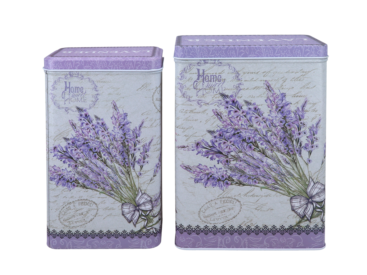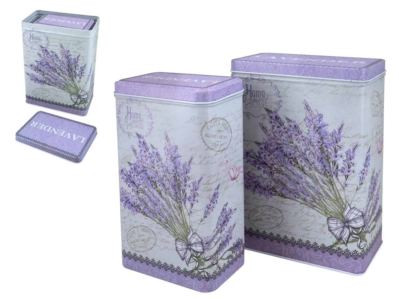 Komplet dwóch puszek z pięknym lawendowym wzorem – powiewlata w każdej kuchni.