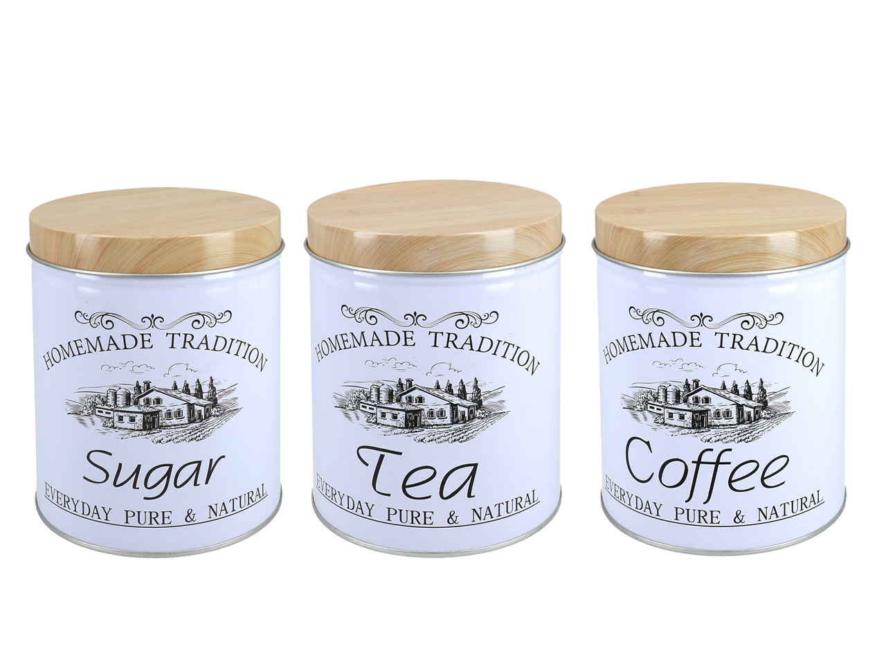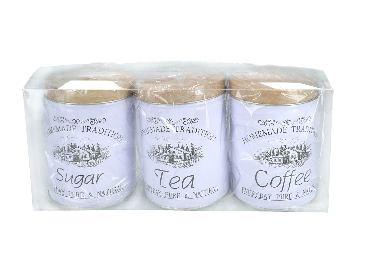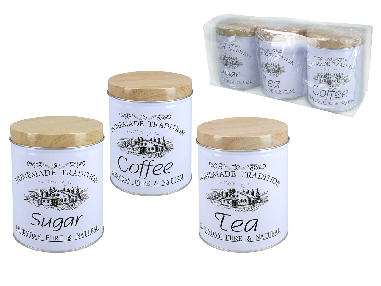 Kpl. 3 puszek metalowych (kawa, hebrata, cukier)