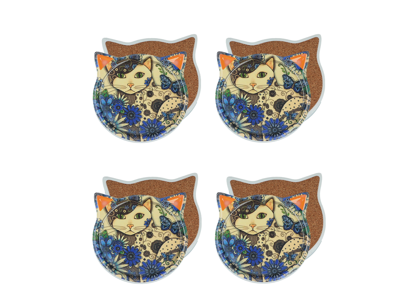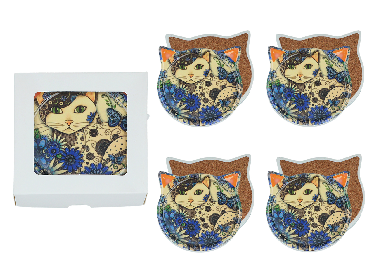 Kpl. 4 podkładek ceramicznych z uszami, koty.