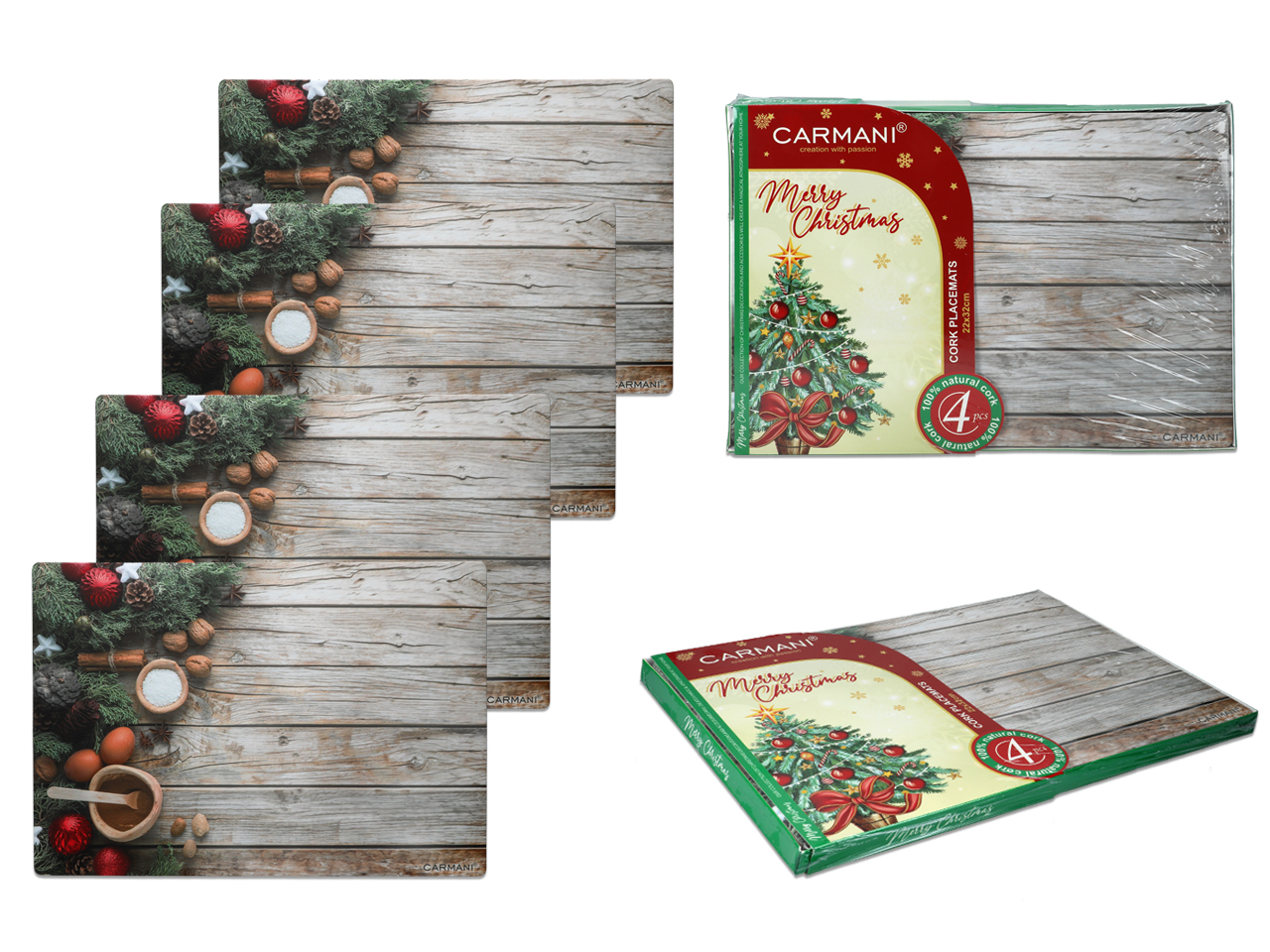 Kpl. 4 podkładek korkowych pod talerze – Boże Narodzenie (CARMANI)