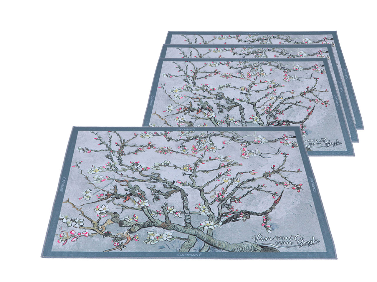 Kpl. 4 podkładek na stół – V. van Gogh, Kwitnący Migdałowiec, srebrny (CARMANI)