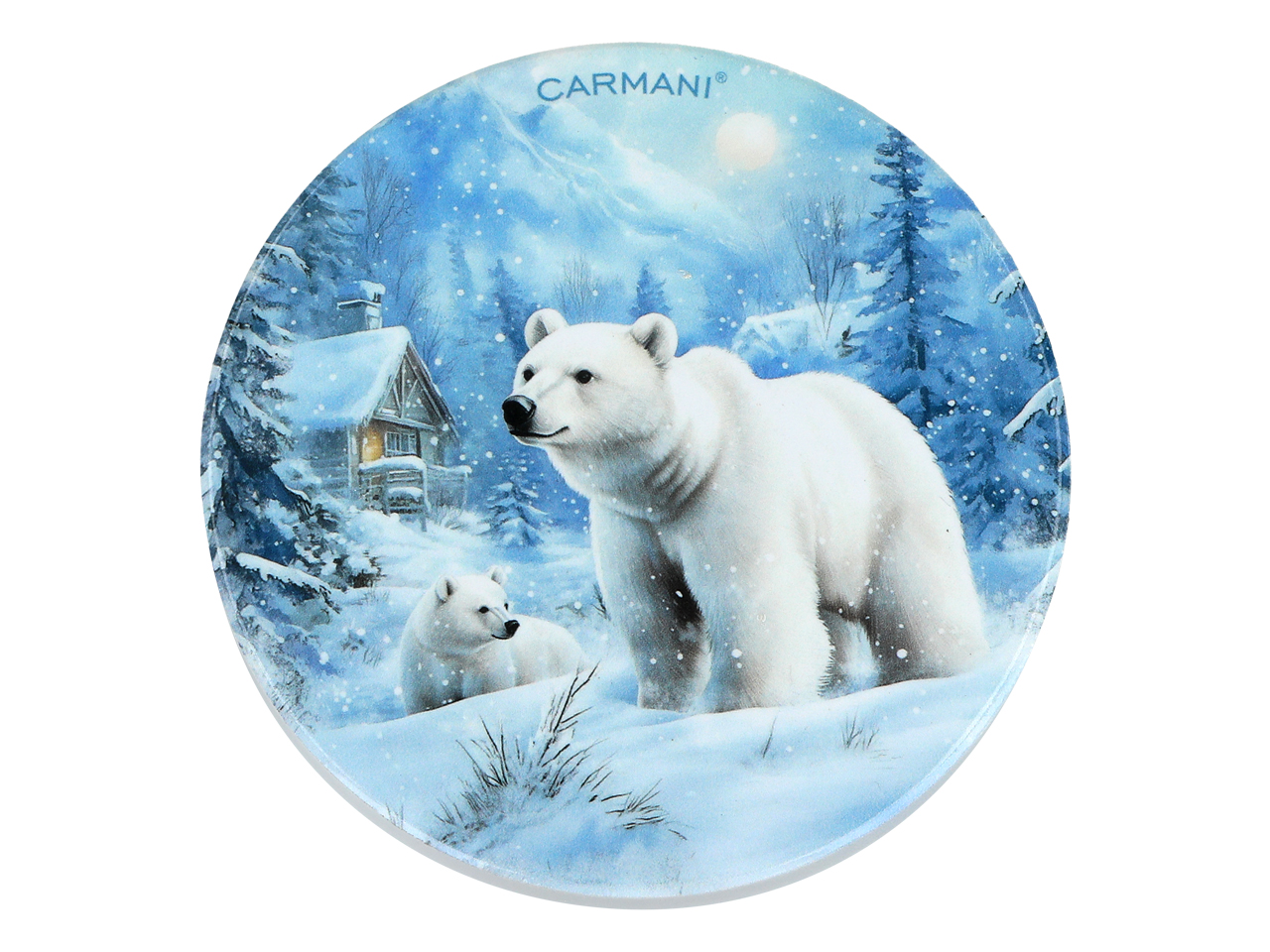 Kpl. 5 podkładka ceramicznych, okrągłych – Zimowe zwierzęta – Niedźwiedzie (CARMANI)