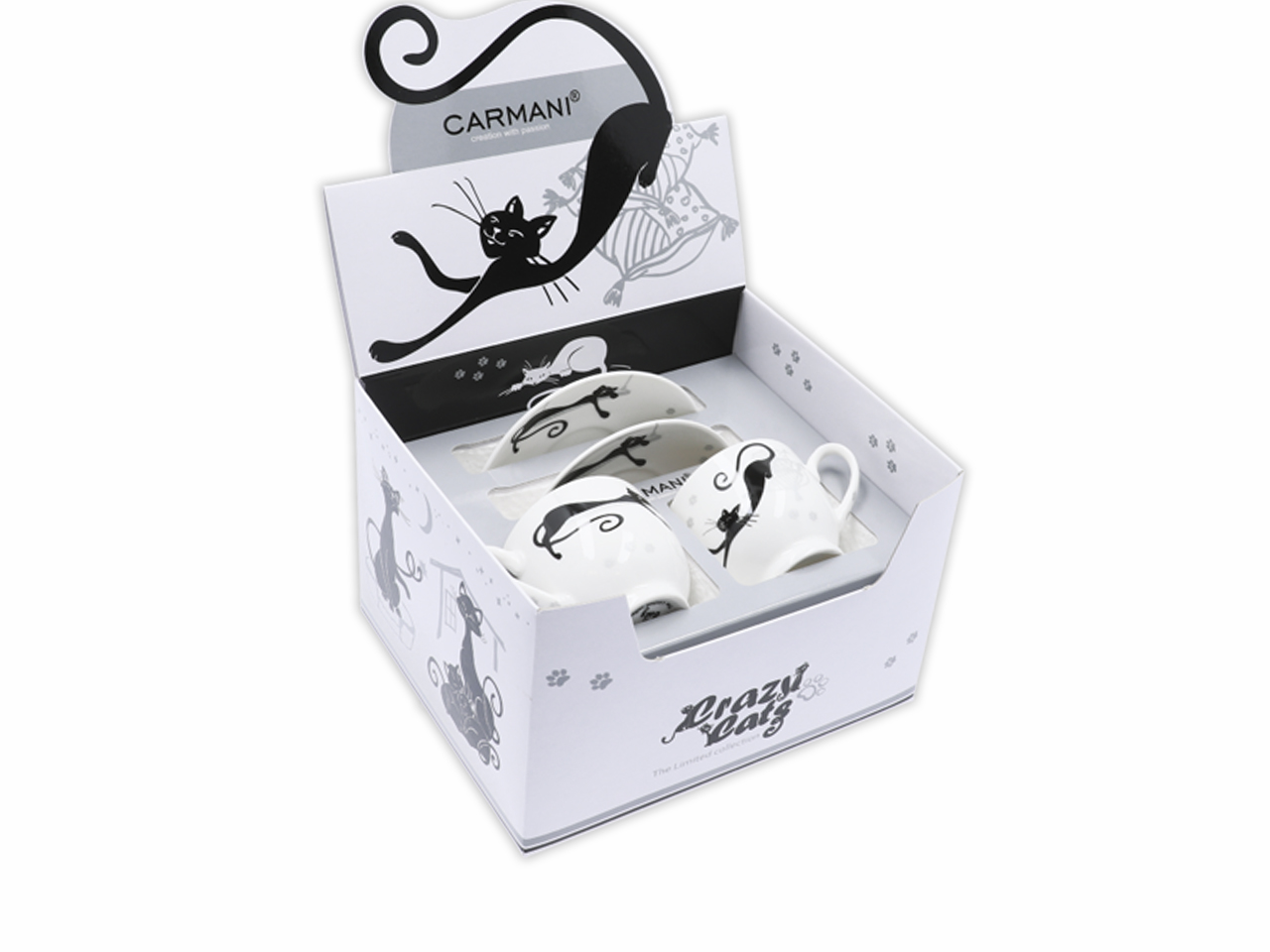 Kpl dwóch filiżanek ze spodkami espresso – Koci świat (CARMANI)