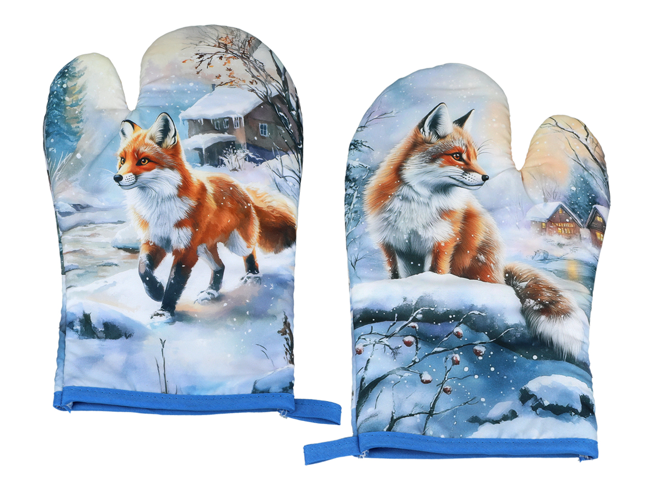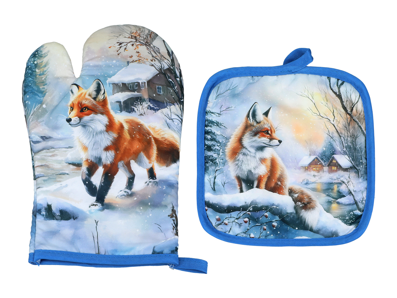 Kpl. Łapka i rękawica kuchenna – Zimowe zwierzęta – Lisy (CARMANI)