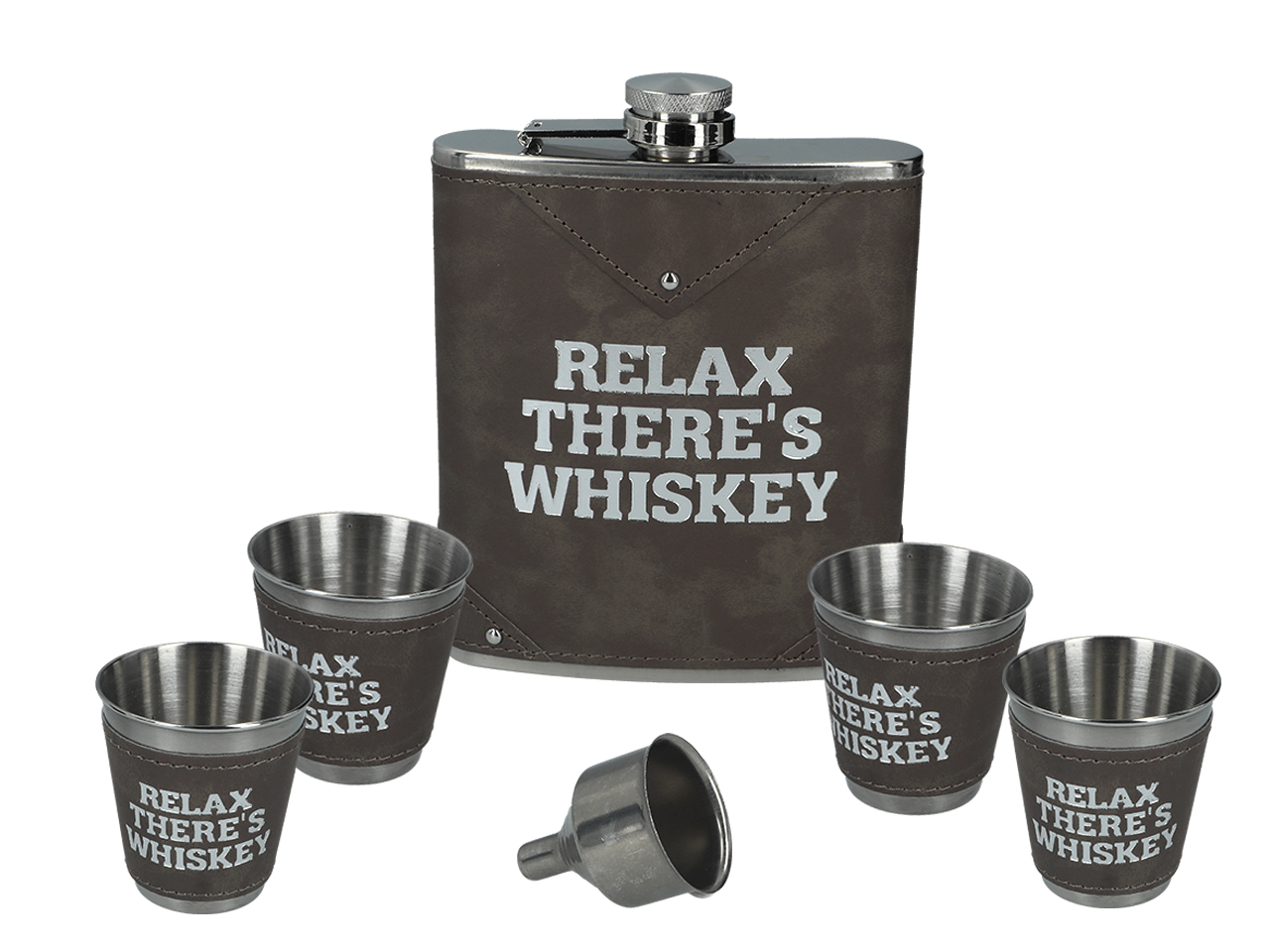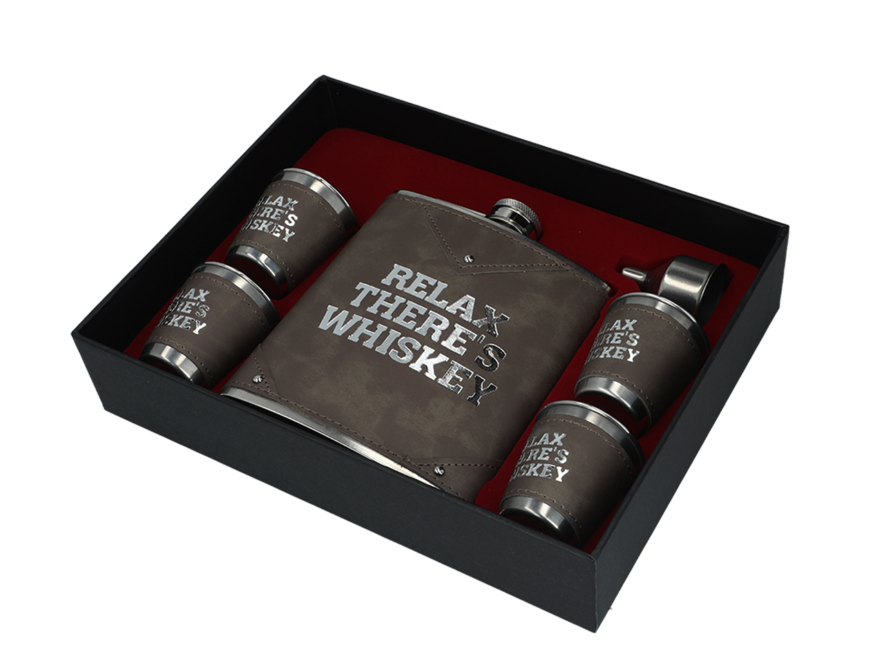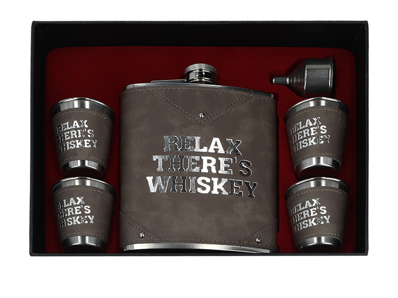 Kpl. piersiówka z lejkiem i 4 kieliszkami