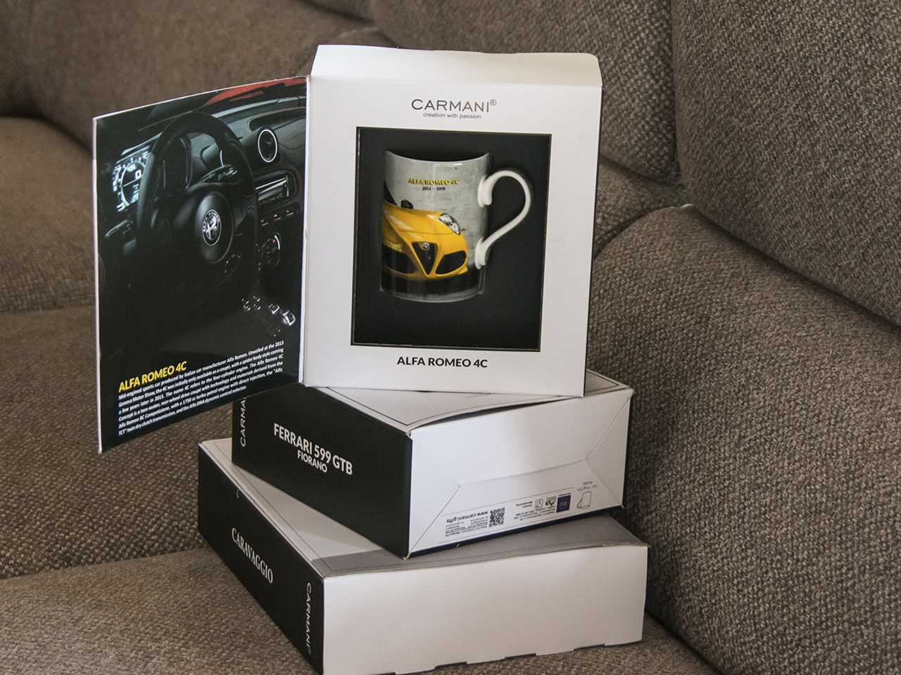 Kubki Carmani, to także idealany proezent dla tych co doceniają piękno porcelany i motoryzacji. Prosty, klasyczny kształt kubka i klasyczny model Alfa Romeo – zestaw idealny.
