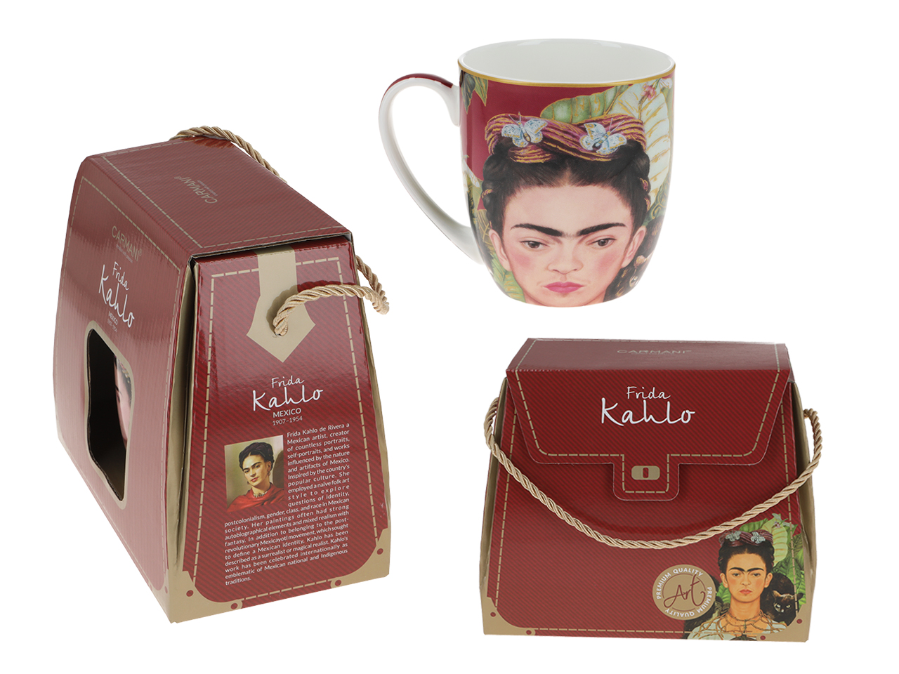 Frida Kahlo to postać fascynująca, przejmująca i inspirująca. Jej twórczośc determinowana cierpieniem fizycznym, zaskakuje kolorami, barwną meksykańską symboliką. Autoportrety malarki doskonale prezentują się na porcelanowych kubkach.
